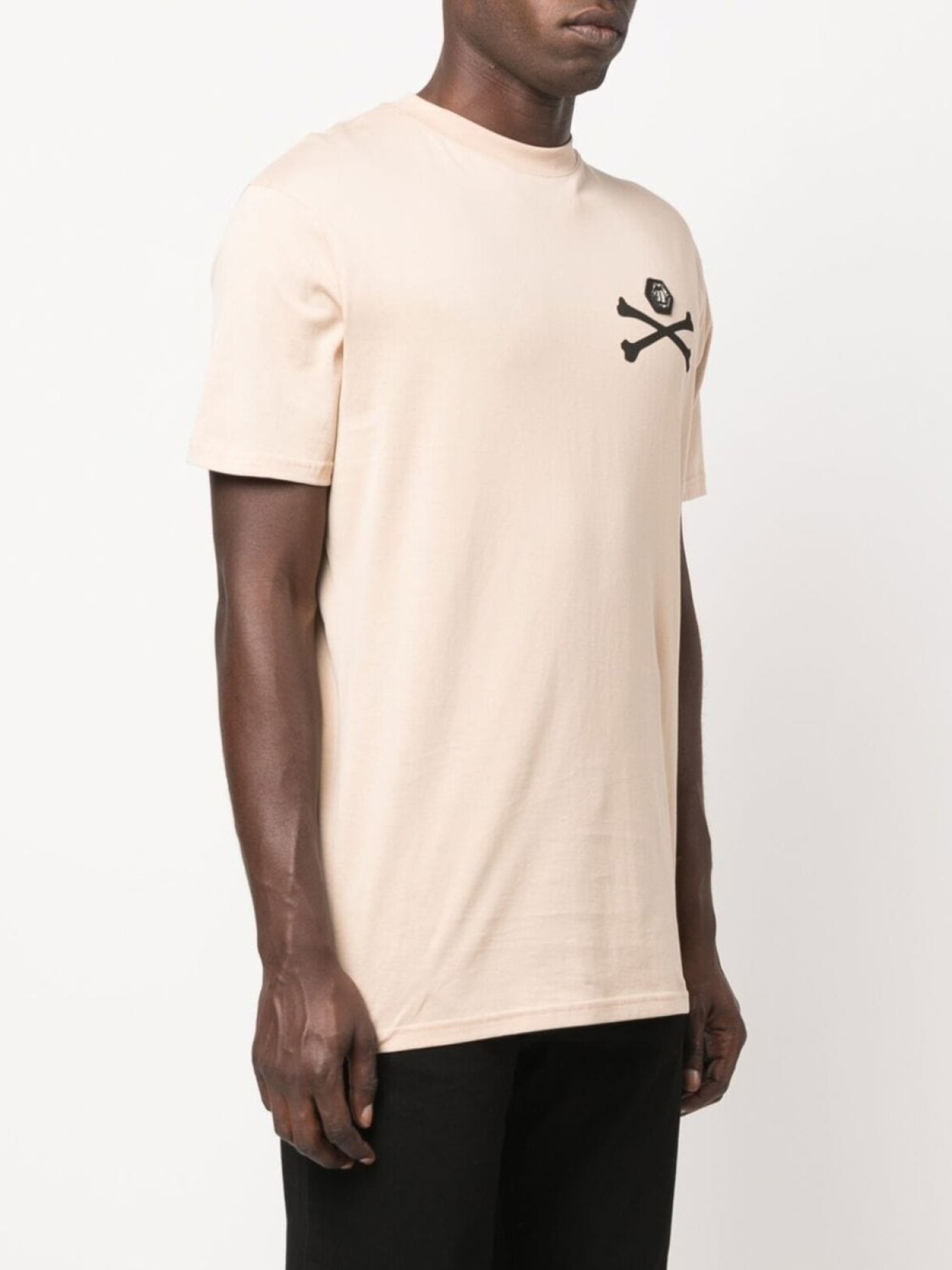 Персик, черный/зеленый, хлопок, ткань джерси, принт с изображением скелета, нашивка с логотипом на груди, круглый вырез, короткие рукава и прямой подол.
