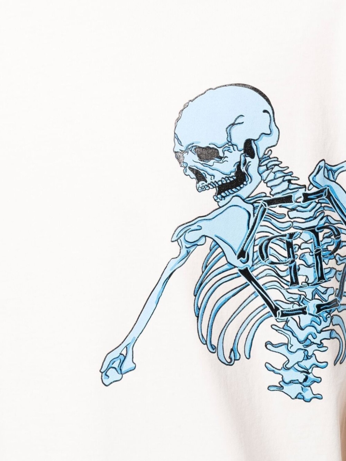 Принт с изображением черепа, логотип спереди, круглый вырез и короткие рукава. Цвет: белый.