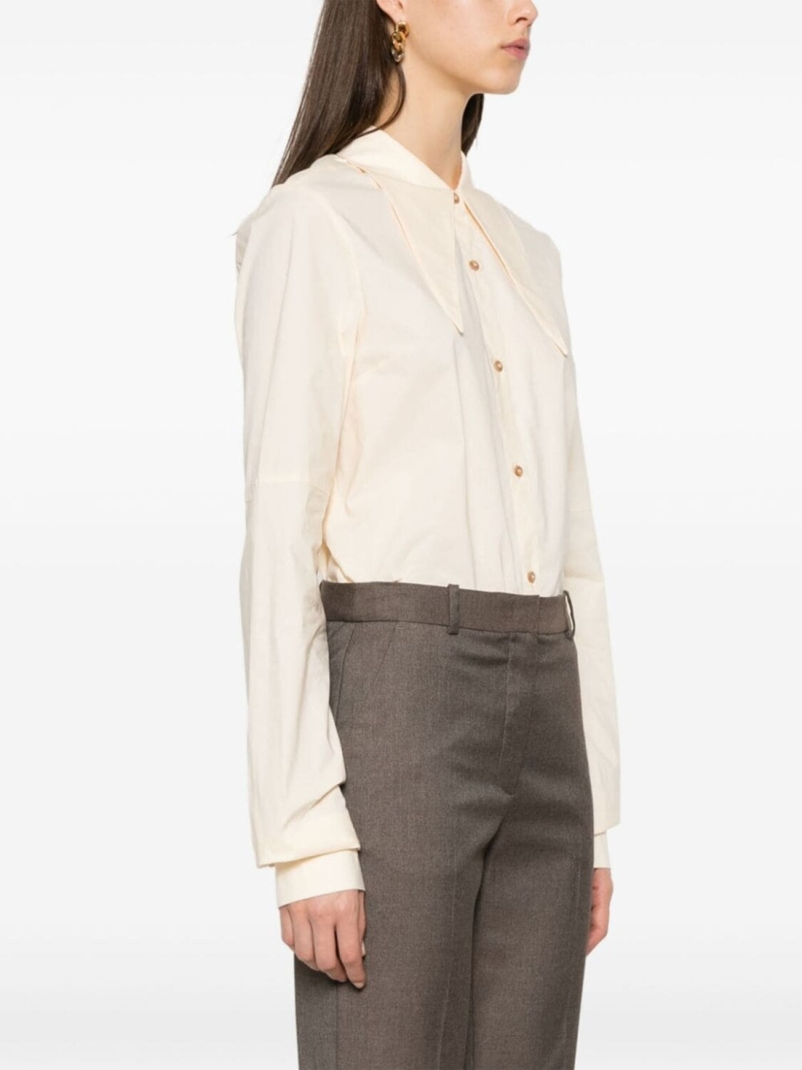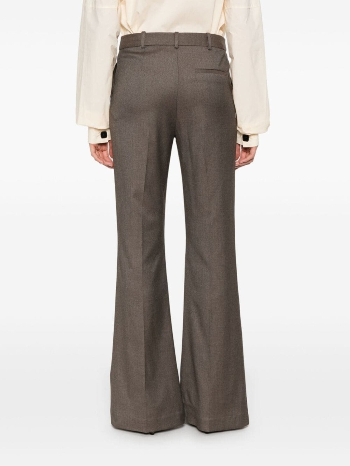 Коричневая саржа серо-коричневого цвета скрытая застежка спереди шлевки для ремня высокая талия заутюженная складка два боковых прорезных кармана задний прорезной карман приталенный крой расклешенный подол Мы сотрудничаем с Good On You — независимым агентством, которое оценивает, как бренды работают с точки зрения их воздействия на планету, людей и животных, с многокритериальной оценкой, упрощенной до пятибалльной шкалы. Чтобы получить наш лейбл сознательности, крупные бренды должны набрать не менее четырех из пяти («Хорошо»), в то время как более мелкие бренды должны набрать не менее трех из пяти («Это начало»). Этот товар принадлежит бренду, получившему оценку три из пяти («Это начало») от Good on You на момент его добавления на FARFETCH. Обратите внимание, что это рейтинг на уровне бренда, и он не гарантирует, что этот продукт изготовлен из сознательных материалов. Узнайте больше о том, что делает продукт сознательным, на нашей странице критериев сознания