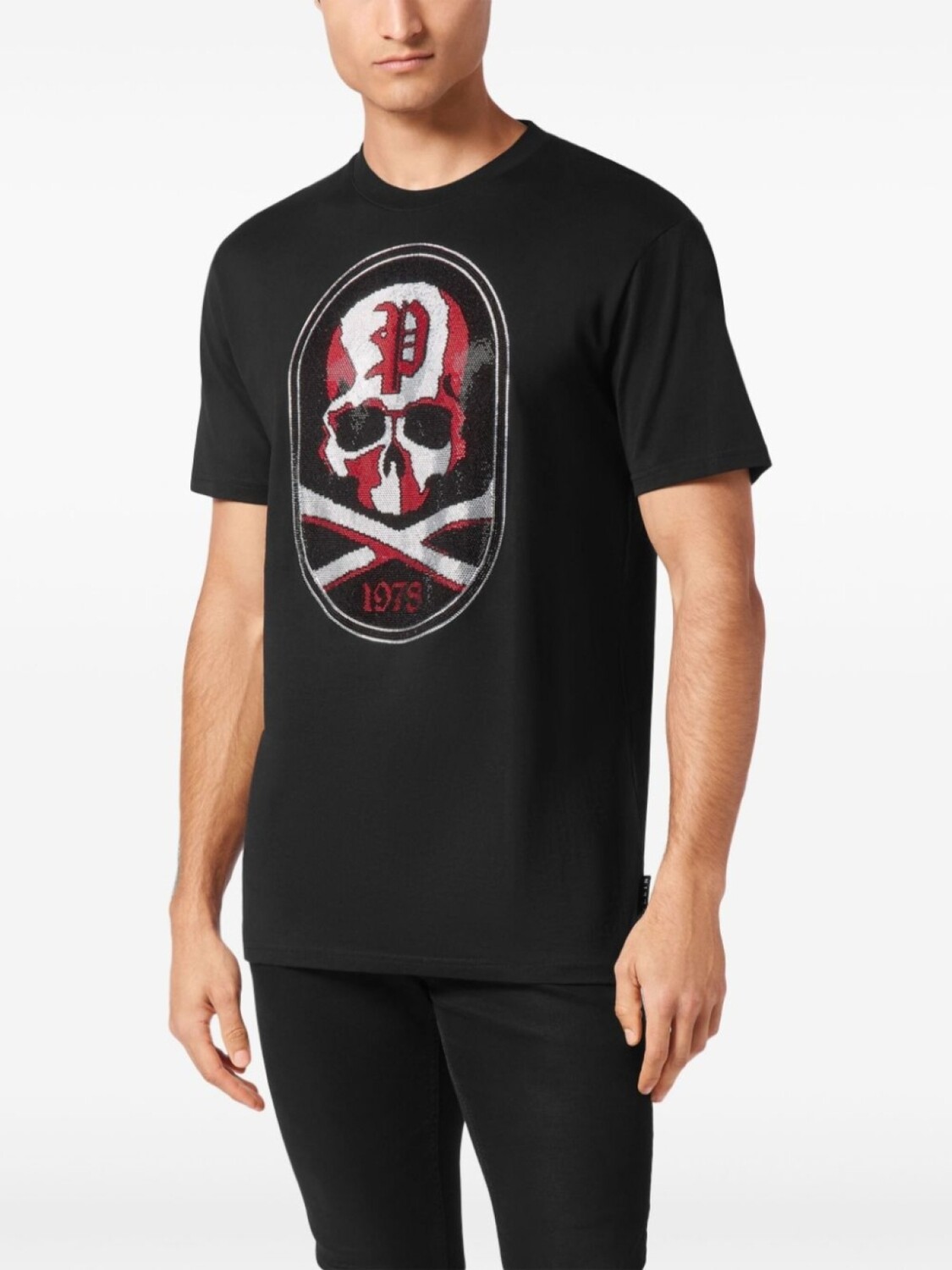 Футболка из хлопка с нашивкой Philipp Plein Skull&Bones, черный