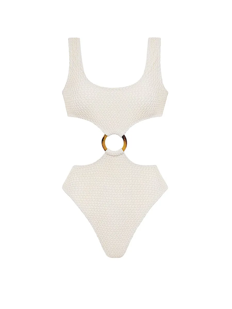 Черепаховый панцирь в ретро-стиле и шикарная высокая штанина делают этот комбинезон удобным для ношения на протяжении всего отпуска. От Montce.