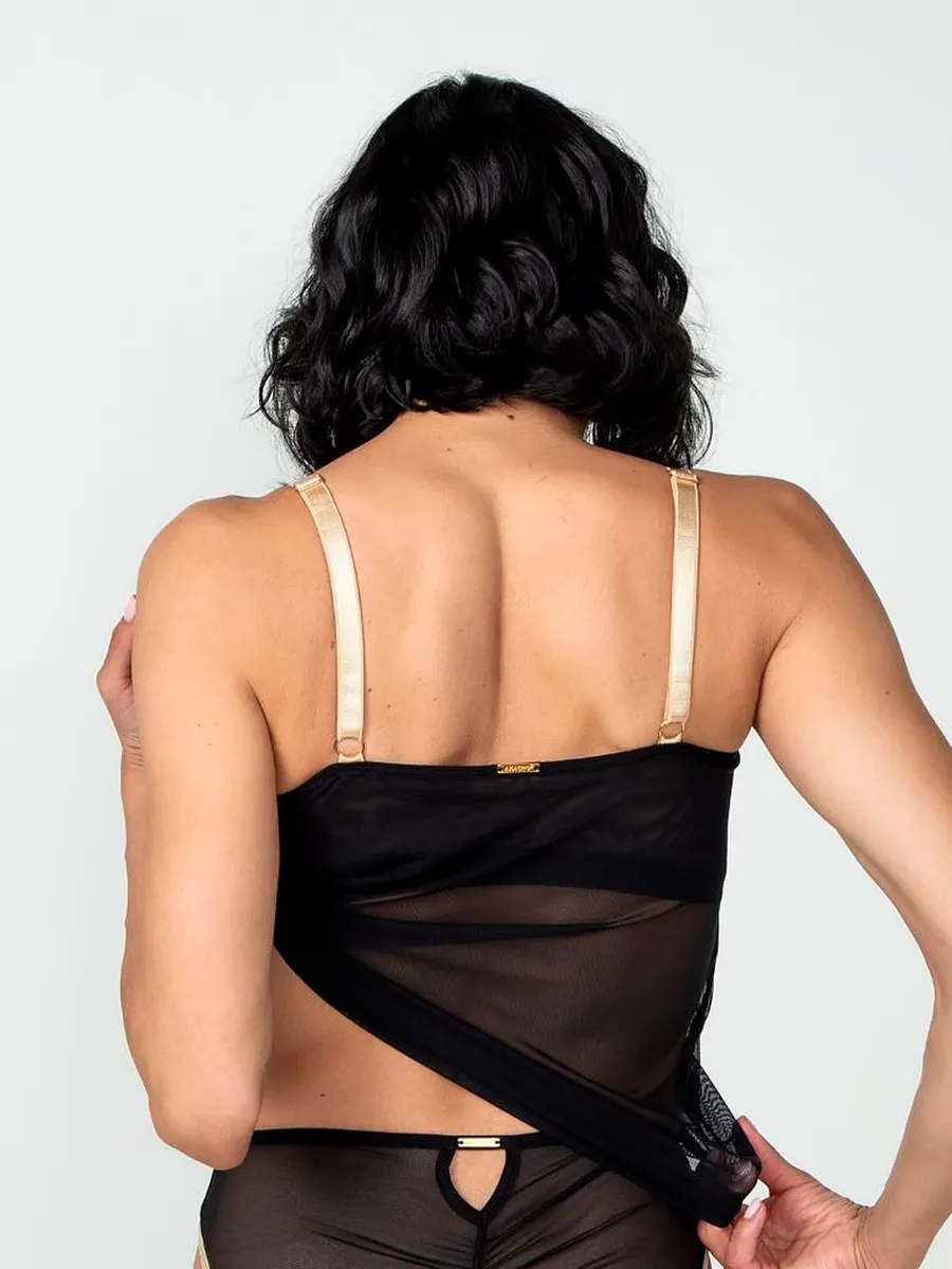 Охлаждающая сетка со встроенным бюстгальтером-полочкой позволяет чувствовать себя легко и легко, не жертвуя при этом поддержкой. Полупрозрачная ткань и встроенный бюстгальтер-полочка с карманом для протеза, подушечкой для скромности или протезом подчеркнут ваш образ и силуэт.