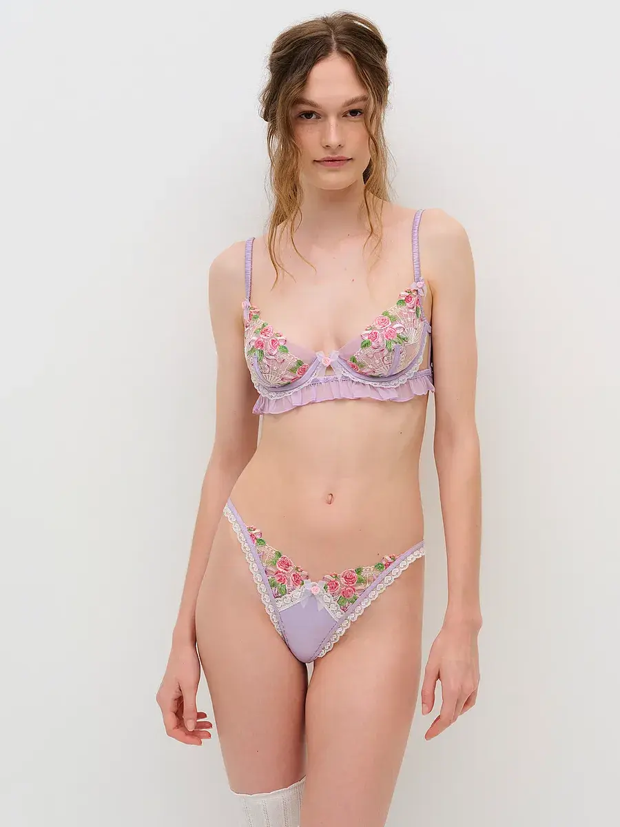 Теперь спокойствие — эти трусики-стринги созданы для волшебных моментов тишины. Он дополнен кружевной отделкой и розочками в старинном стиле. Сочетайте его с подходящим бюстгальтером на косточках Serenity, чтобы создать изысканный образ.