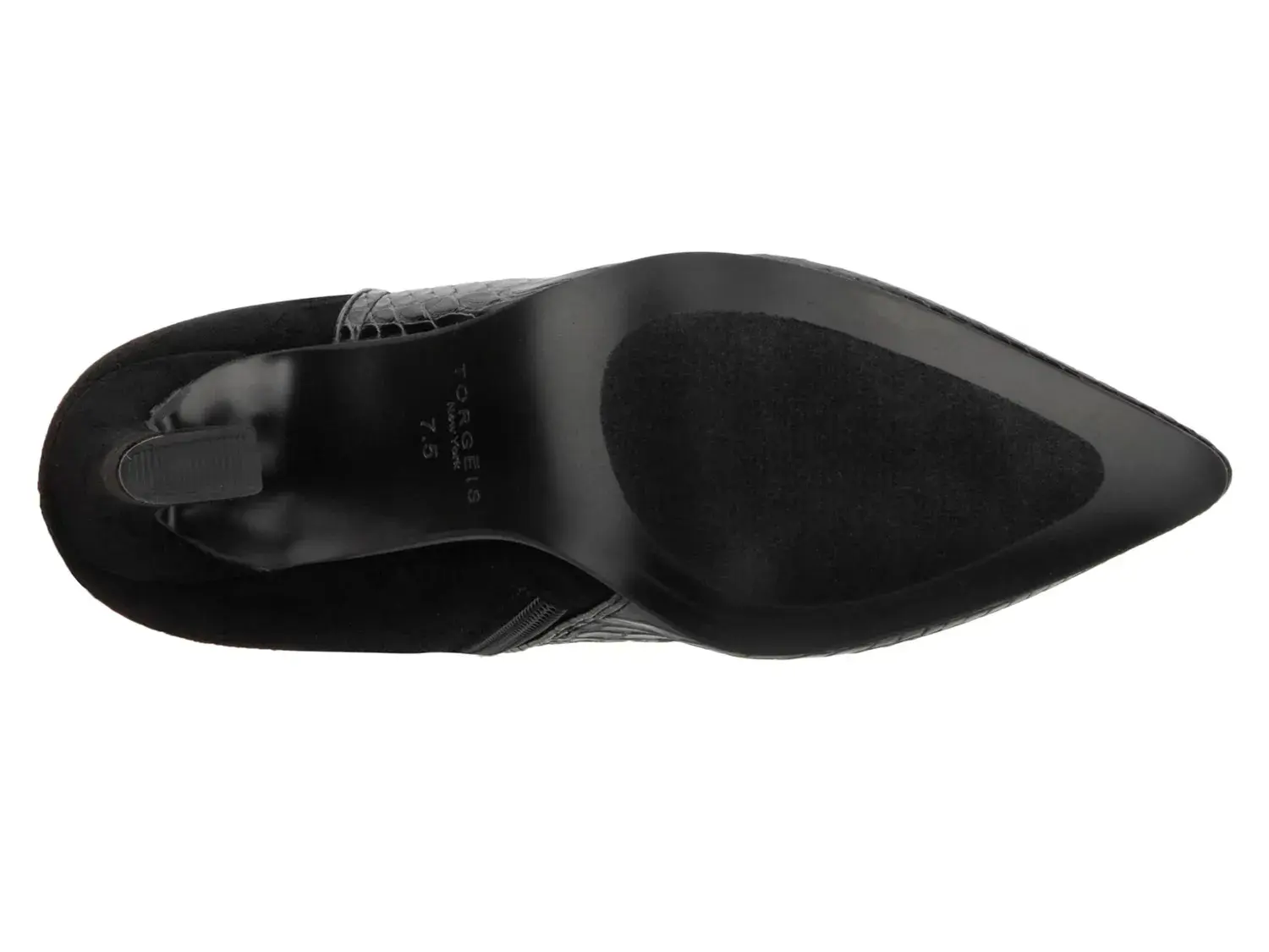 Оставьте зрителей в восторге от обуви Mia от TORGEIS. Эти комбинированные ботинки имеют заостренный носок с очаровательным эффектом крокодила, который обязательно привлечет внимание. Внутренняя молния во всю длину обеспечивает легкость надевания и снятия, а слегка изогнутый каблук придает женственный вид.