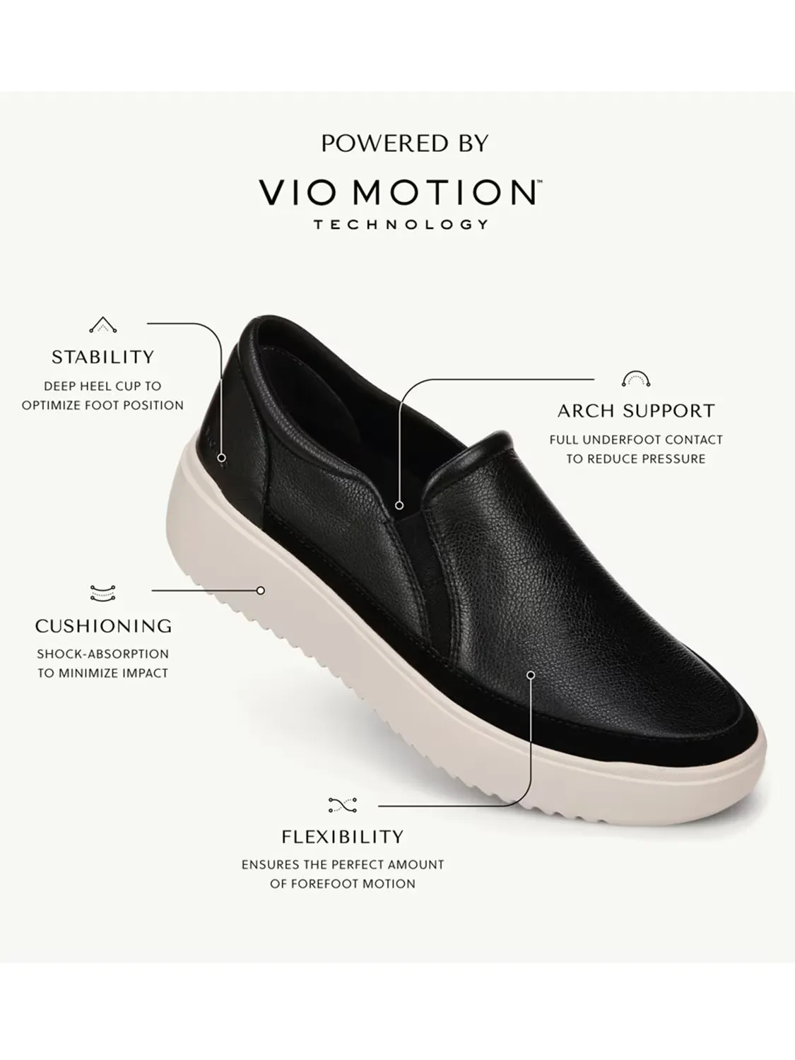 Создайте современный стиль с кроссовками-слипонами Vionic Kearny. Кожаный верх с рейтингом LWG-Gold создает роскошный вид и отличается экологичностью, а двойные эластичные вставки обеспечивают эластичную посадку. Массивная платформа и танкетка добавляют привлекательности.