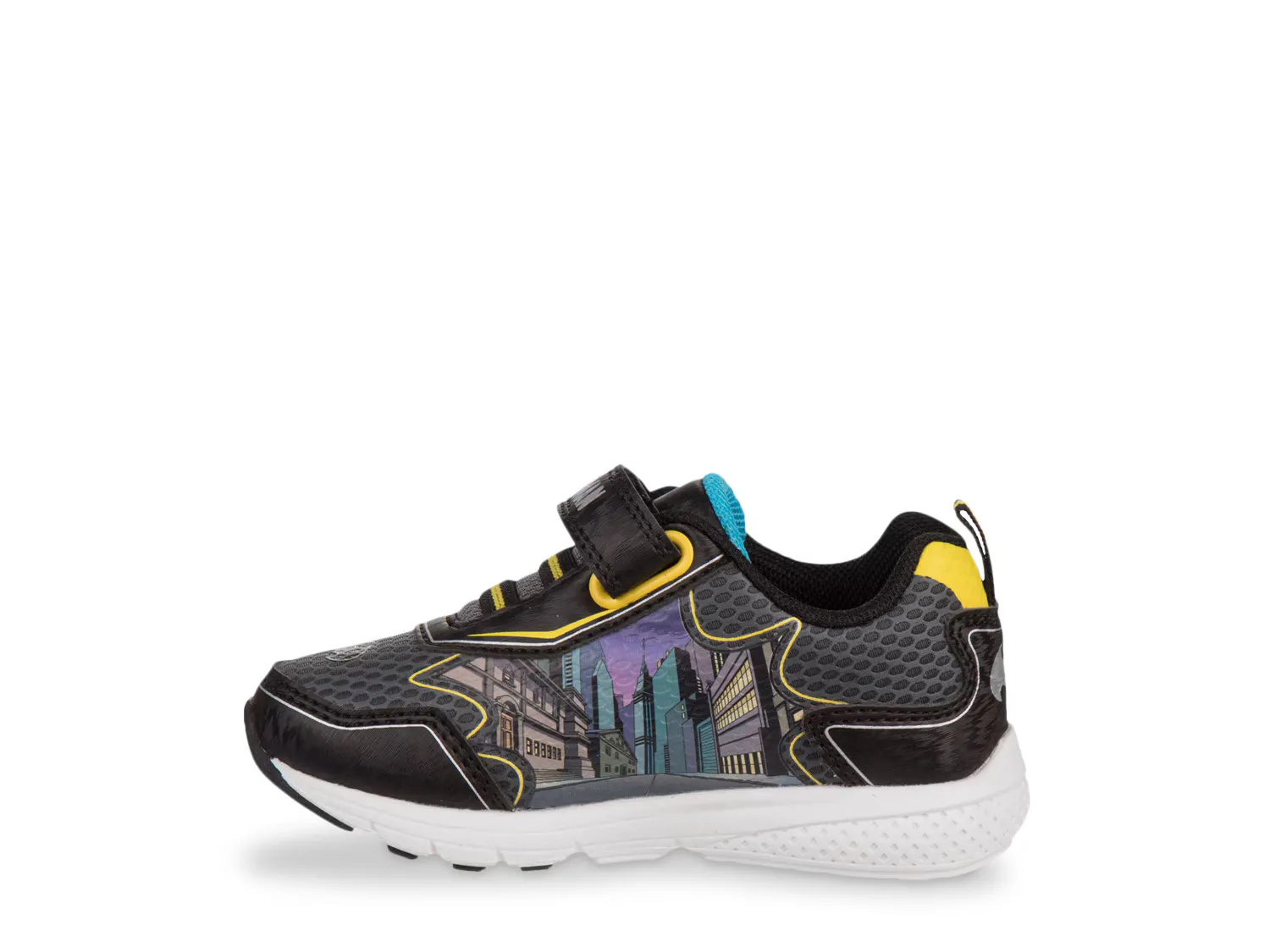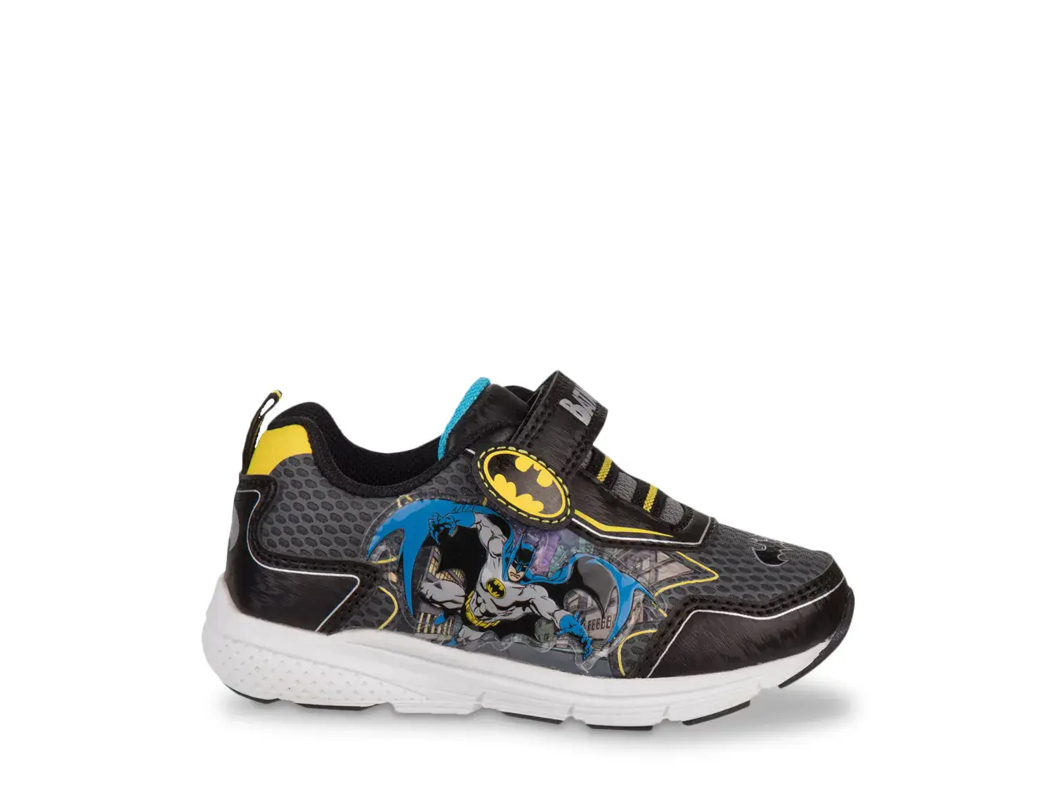 Вашему малышу понравится сочетать кроссовки Бэтмена со своим любимым нарядом. Графика Бэтмена придает этим кроссовкам на липучке захватывающий вид, дополненный забавной подсветкой. Классический дизайн кроссовок с мягким язычком и воротником идеально сидит по фигуре.