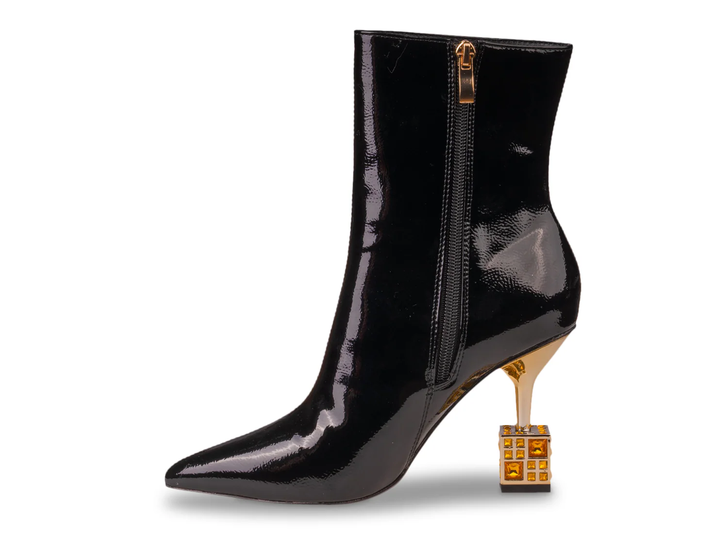 Создайте эффектный образ с ботильонами Crown от Lady Couture. Шикарный заостренный носок и каблук-катушка с инкрустированным стразами колпачком сделают эти ботильоны незабываемыми.