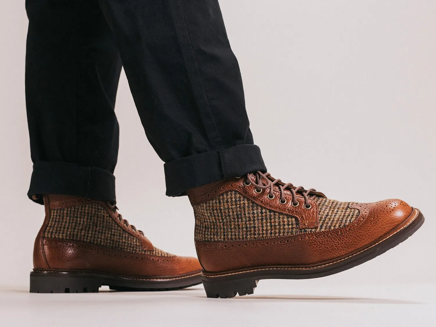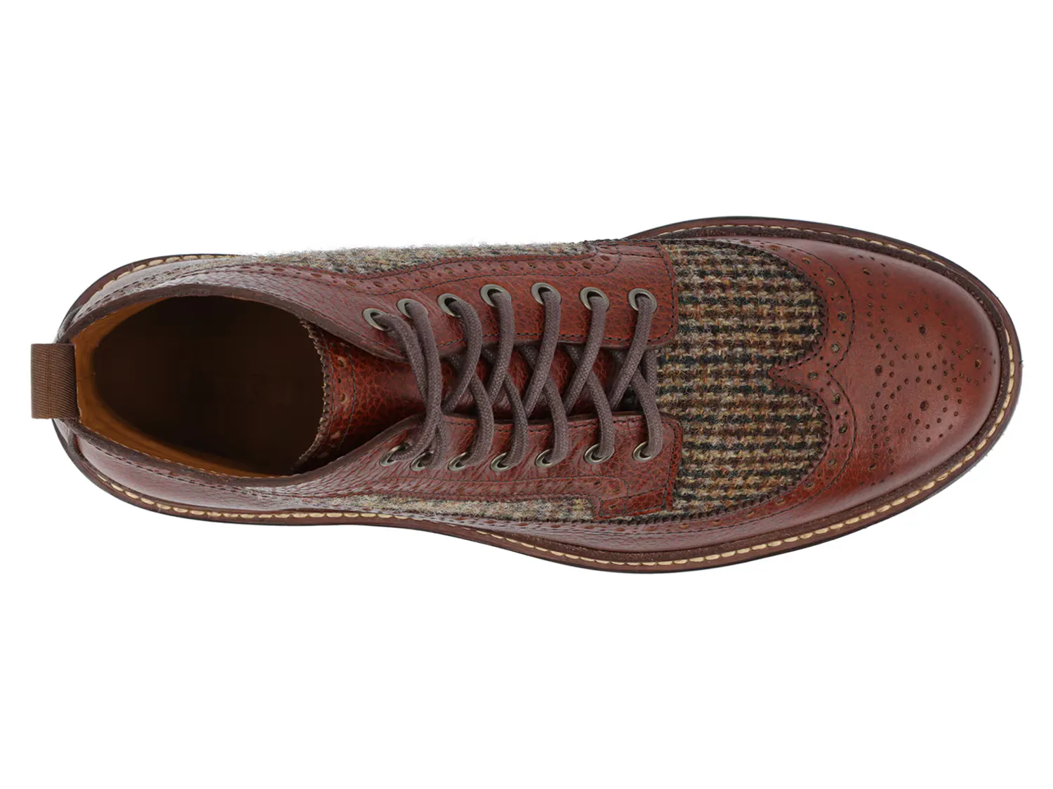 Выйдите на улицу с долей очарования в ботинках Taft Boston. Ботинки на шнуровке из твидовой ткани, кожаные кончики крыльев и акценты в стиле броги, которые соответствуют моде. Кожаная подкладка и мягкая кожаная стелька обеспечивают комфорт, а резиновая подошва коммандос обеспечивает достаточную поддержку.