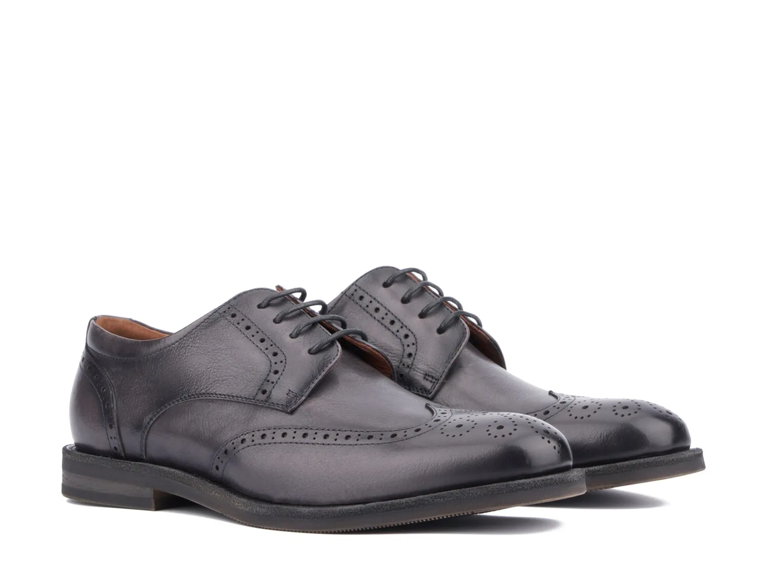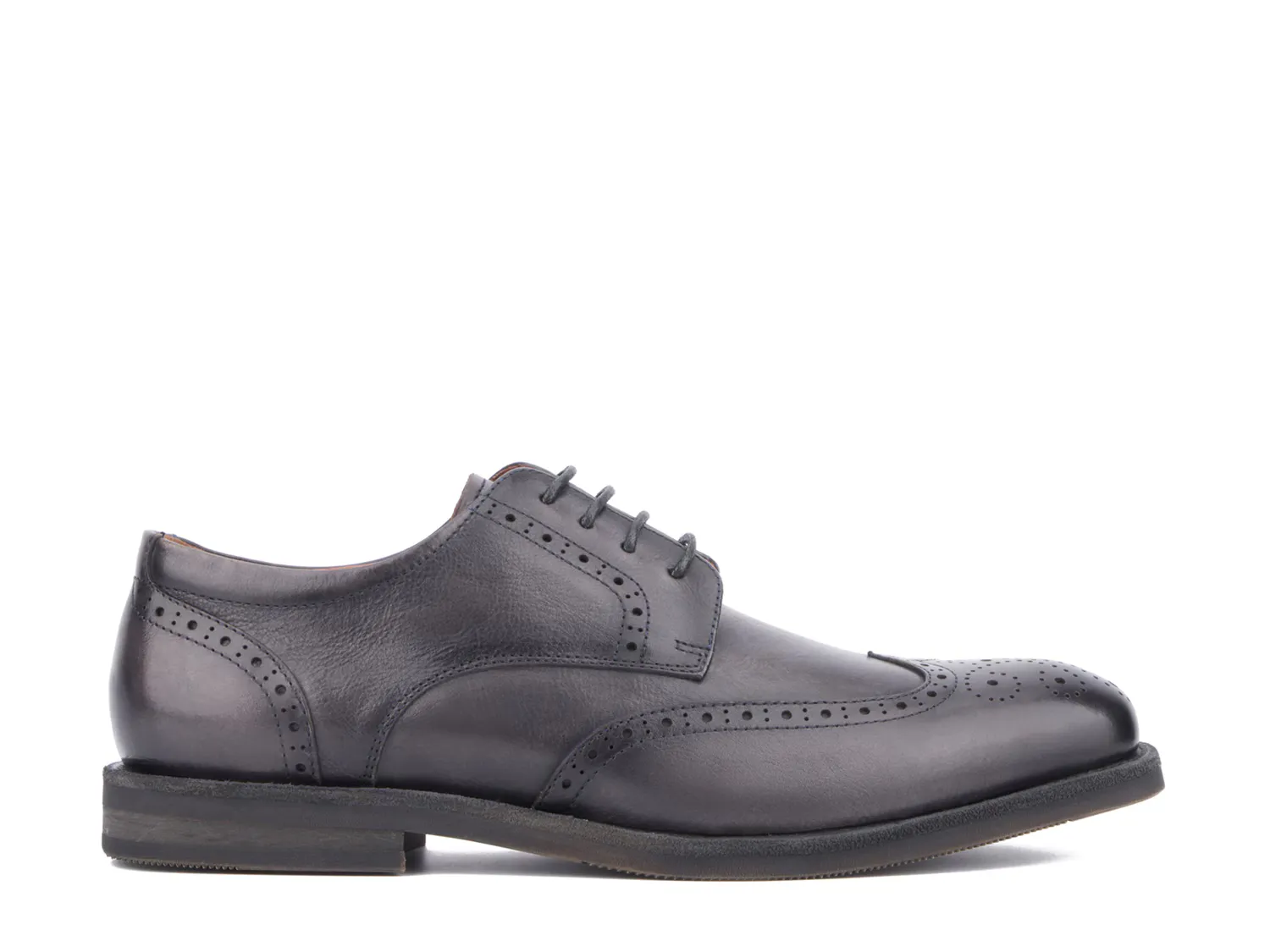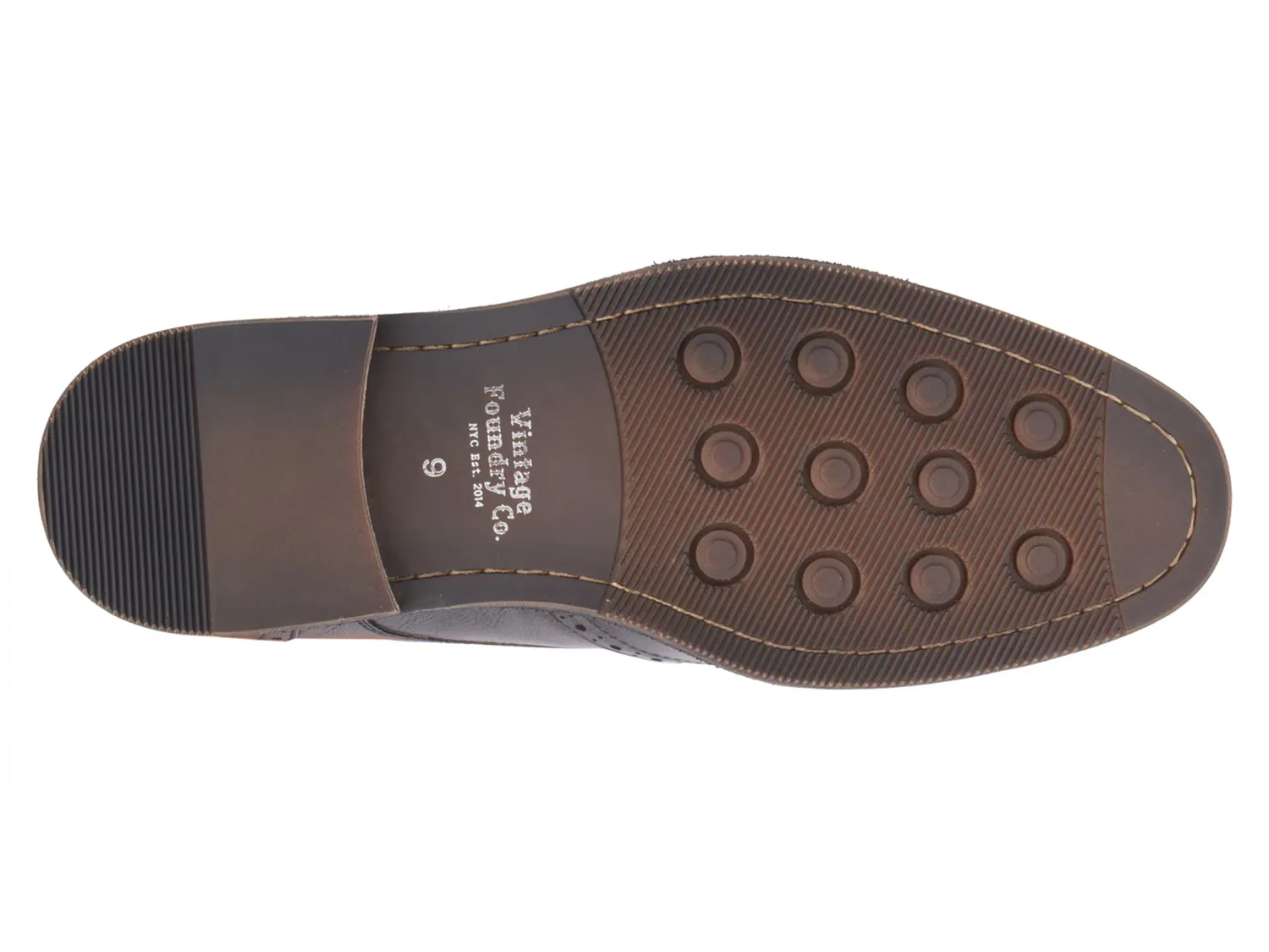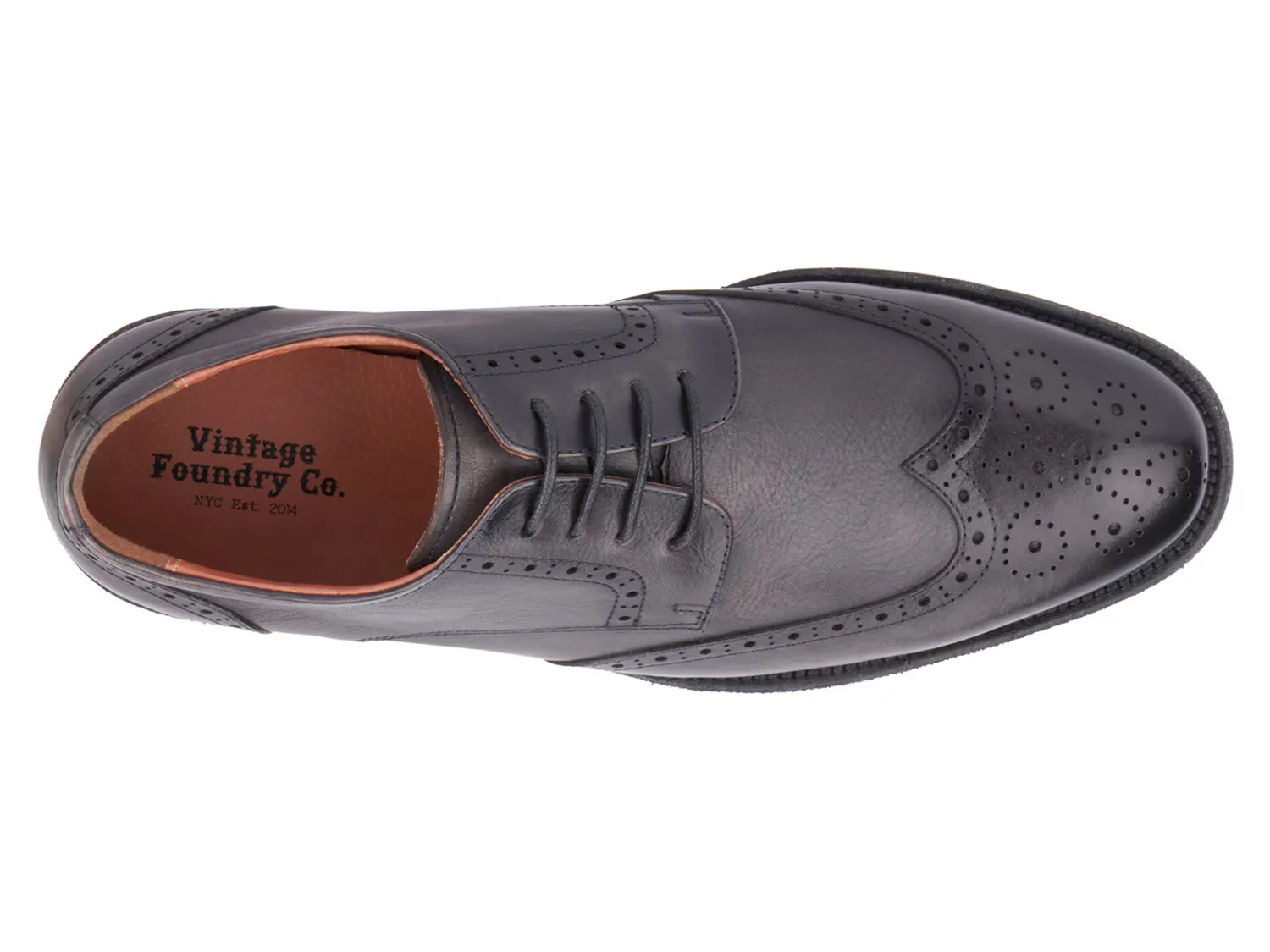Классический шарм оксфордов Vintage Foundry Irwin привлечет внимание, куда бы вы ни пошли. Шнуровка на законцовках крыльев украшена акцентами и полированными деталями, которые излучают неподвластную времени классику. Верх из мятой кожи выглядит поблекшим.