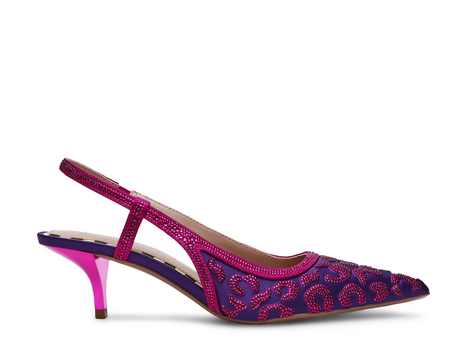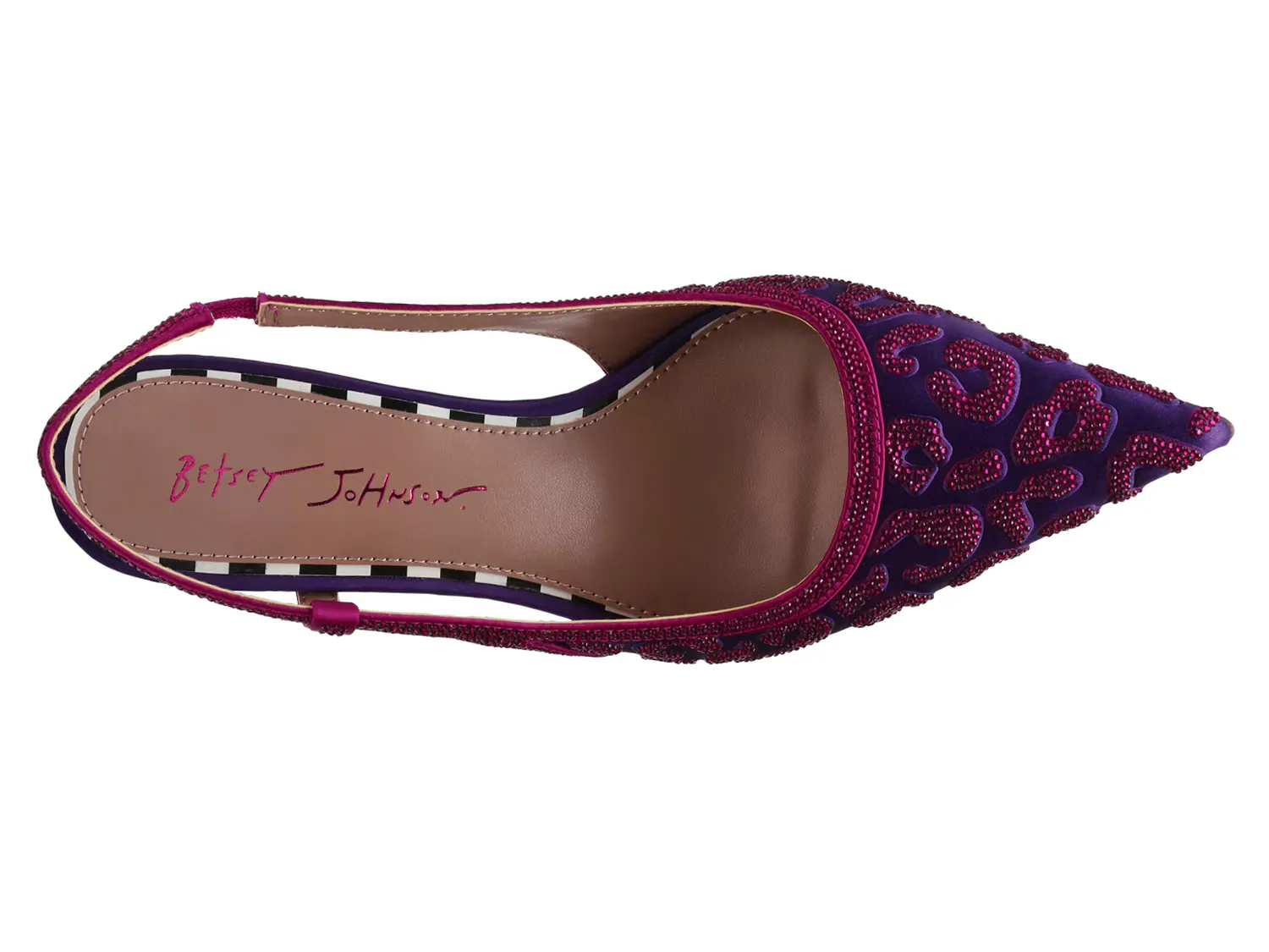 Коварное чутье находится в шаге от помпы Бонни от Бетси Джонсон. Блестящая отделка стразами привлекает внимание и подчеркивает классический дизайн с открытой пяткой.
