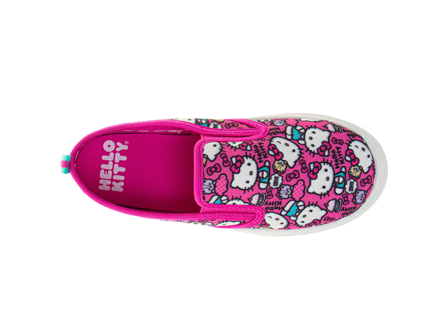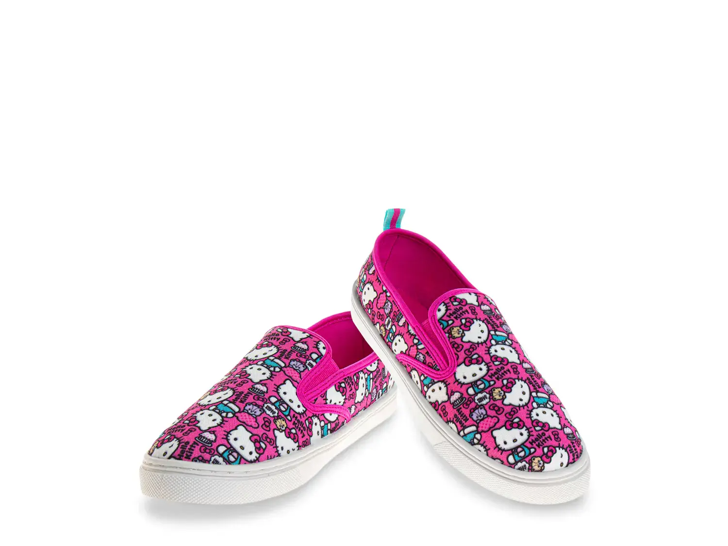 Кроссовки-слипоны Hello Kitty придадут игривый вид ансамблю вашего малыша. Принты hello kitty по всей поверхности придают милый вид этим кроссовкам из парусины с эластичными боковыми выступами для удобной посадки. Резиновая подошва обеспечивает впечатляющее сцепление и поддержку.