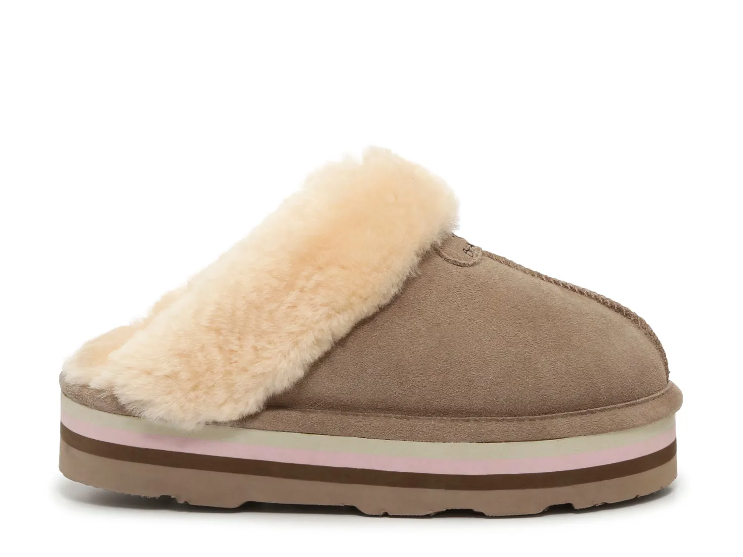 Сохраняйте стильный вид, даже когда отдыхаете дома, с тапочками на платформе Retro Loki от Bearpaw. С разноцветной плоской межподошвой и пушистой отделкой из овчины вам захочется носить эту пару весь день!