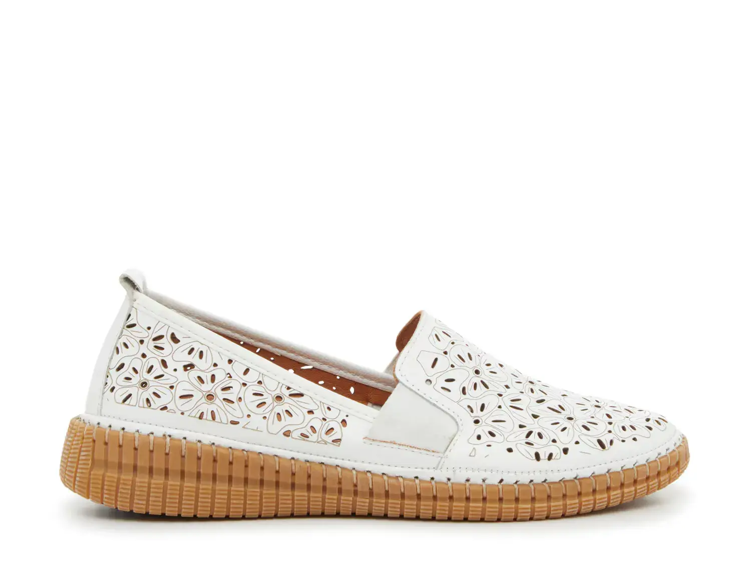 Повседневный образ не должен быть скучным! Слипоны Joji от Spring Step имеют простой силуэт, дополненный замысловатыми цветочными деталями и детальными вырезами.