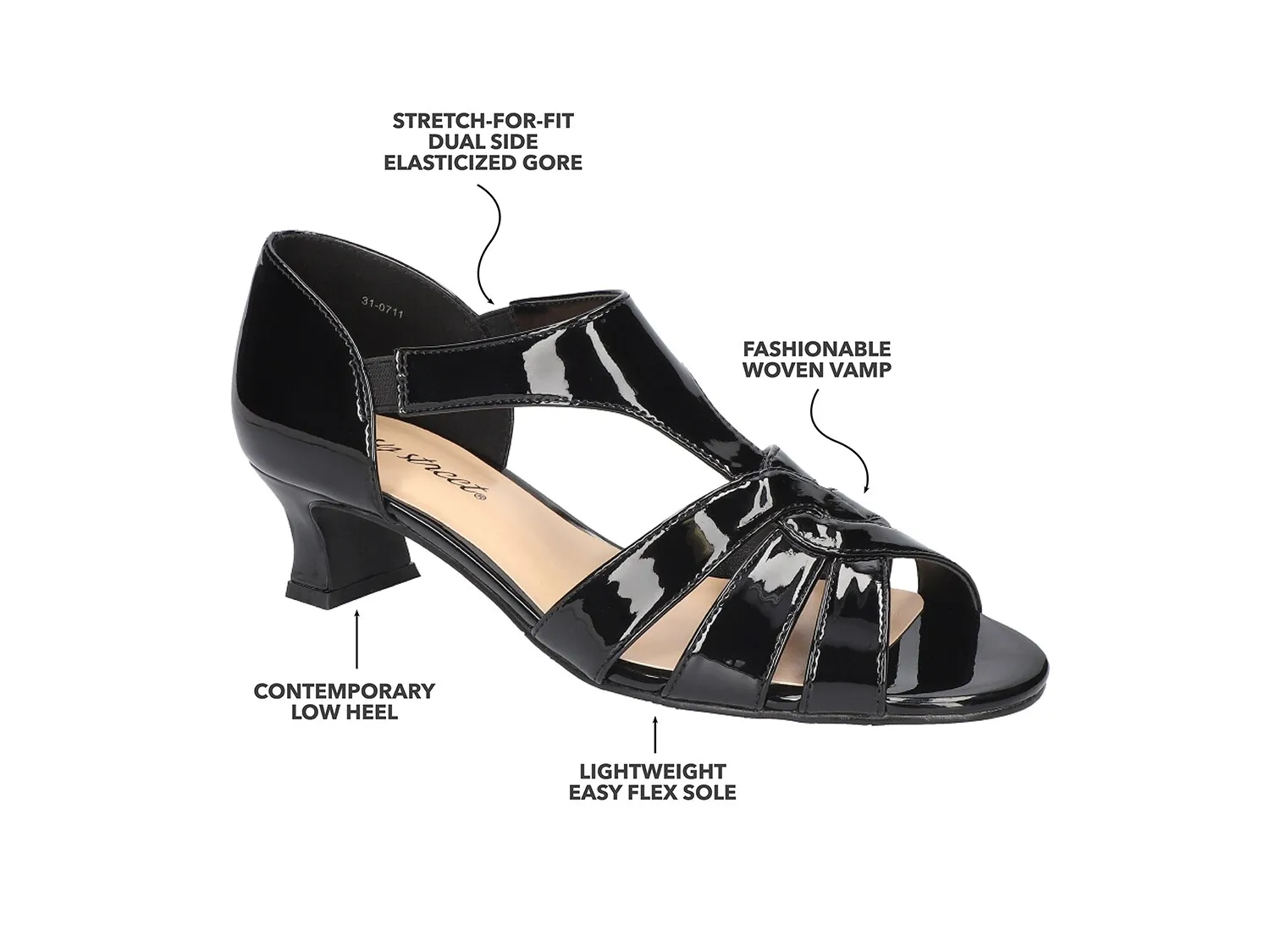 Сочетайте с сандалиями Easy Street Essie разные наряды, и вы по-прежнему будете выглядеть свежо. Босоножки на каблуке имеют изысканный тканый верх с ремешками и двойные эластичные эластичные вставки, обеспечивающие удобную посадку. Мягкая стелька и подошва Easy Flex помогут вам двигаться.