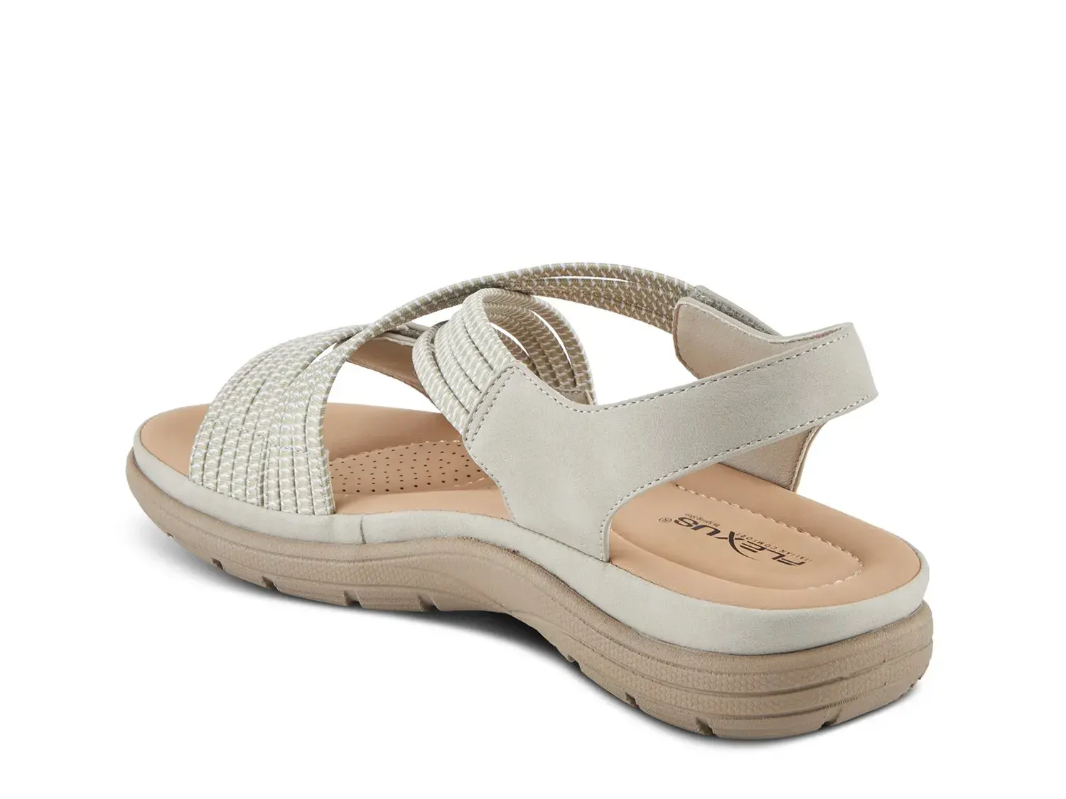 Повысьте свой уровень моды и комфорта с помощью босоножек на танкетке Crossbeam от Flexus. Несколько перекрещивающихся эластичных ремешков на союзке обеспечивают плотную посадку, а синтетическая стелька с перфорацией на своде стопы и в передней части стопы удерживает ваши ступни.