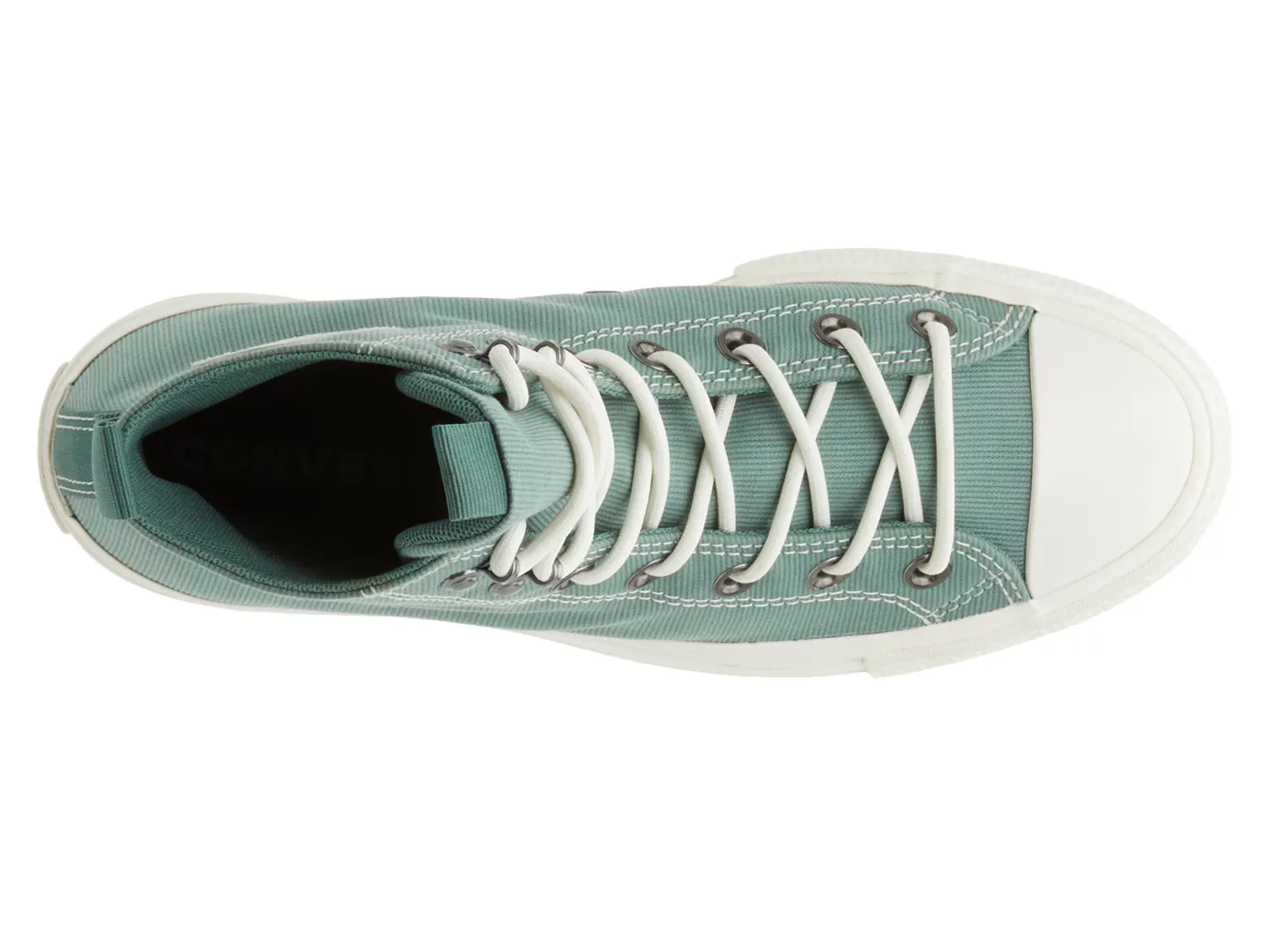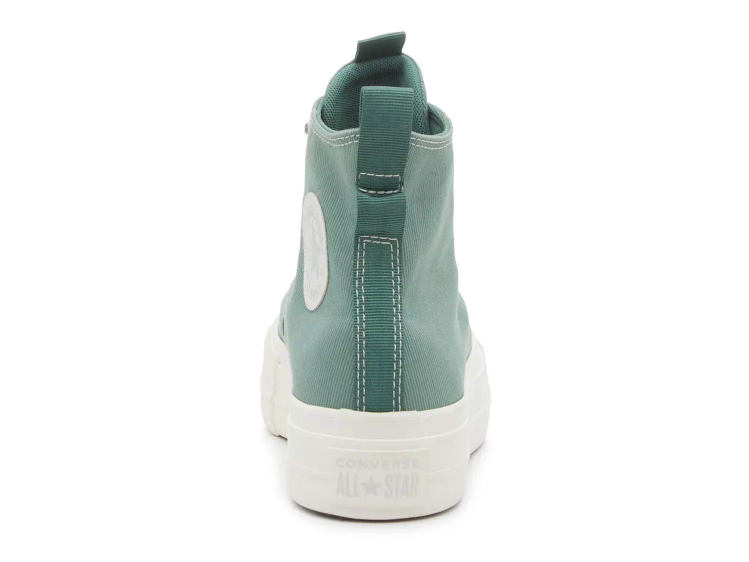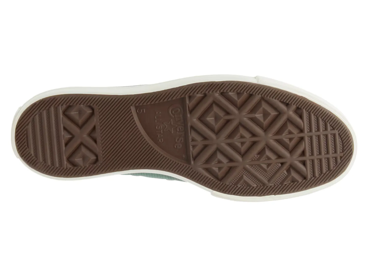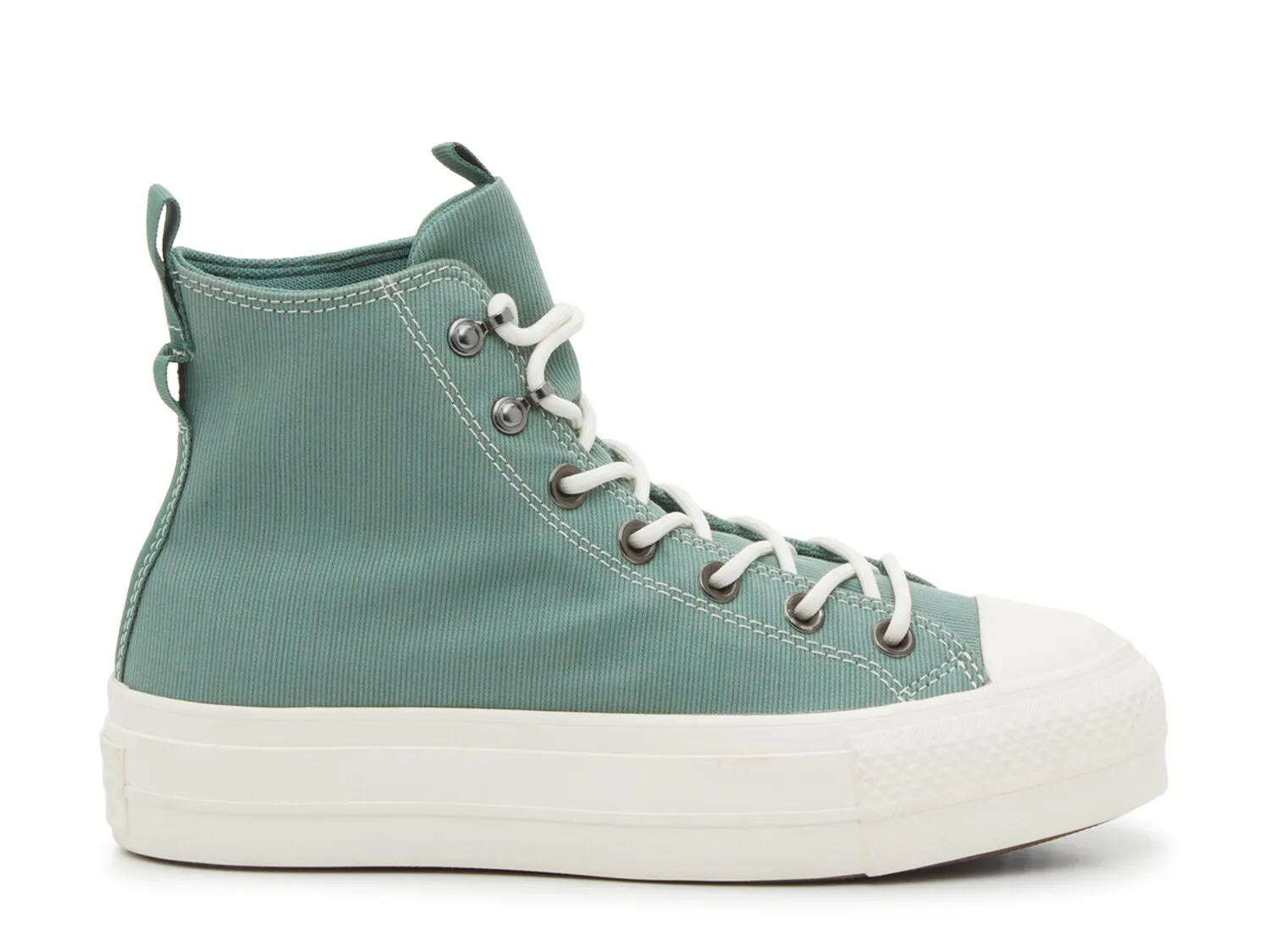 Повседневные образы получили модное обновление с кроссовками на платформе Chuck Taylor All Star от Converse. Эти высокие кроссовки землистого оттенка с контрастными черными полосами вдоль плоской межподошвы подойдут к любому наряду.