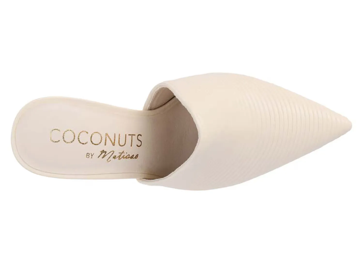 Продемонстрируйте свое уникальное чувство моды с помощью мулов Raina от Coconuts. Будь то ребристая текстура на союзке, заостренный носок или скульптурный каблук, эти слипоны обязательно привлекут внимание со всех сторон.