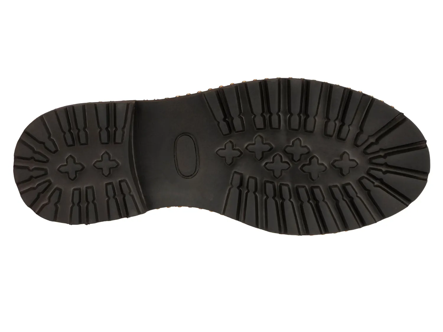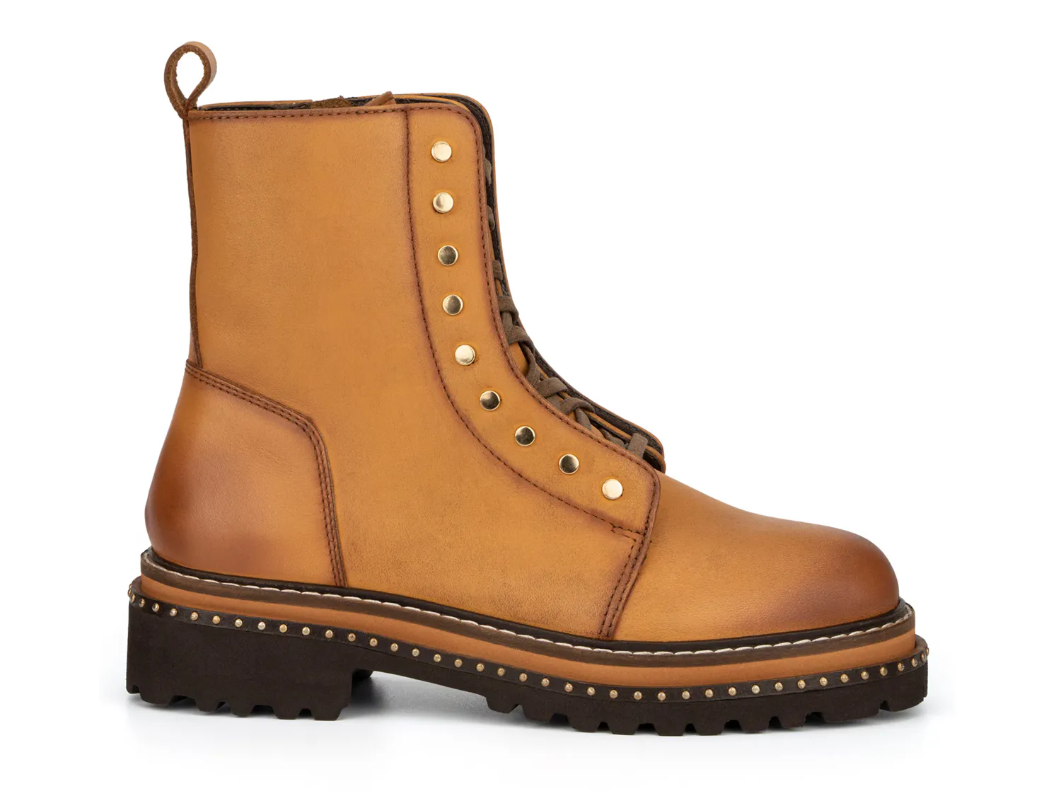 Продемонстрируйте свое уникальное чувство моды, отправившись на прогулку в ботинках Portia от Vintage Foundry. Кованые заклепки вдоль союзки и ранта придают этим ботильонам эксцентричный вид. Резиновая подошва с выступами и массивный каблук обеспечивают устойчивость.