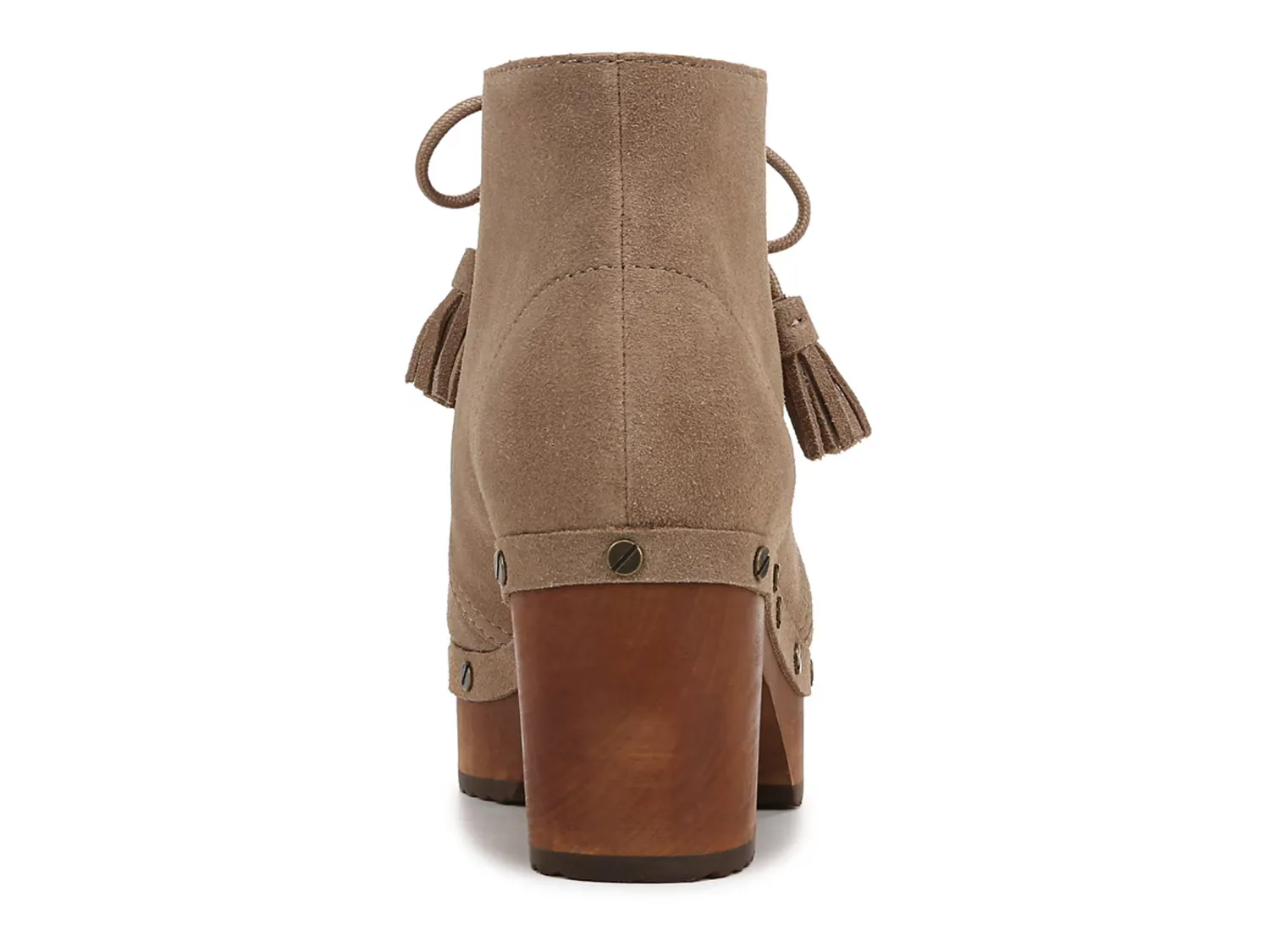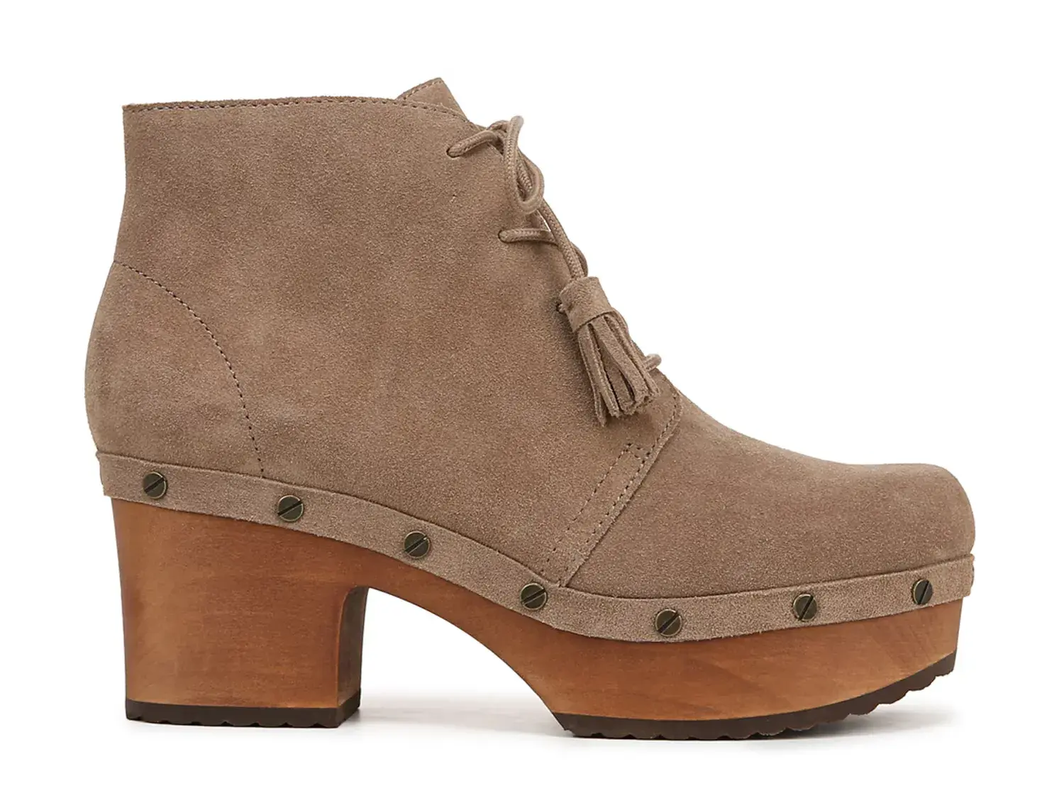Продемонстрируйте свою уникальную сторону с ботильонами Original Chic в стиле сабо от Dr. Scholl's. Эти ботильоны выделяются среди остальных благодаря кисточкам, межподошве из натурального дерева и шипам. Замша, полученная ответственно на кожевенных заводах, сертифицированных LeatherWorkingGroup, тканевая подкладка, частично изготовленная из переработанных пластиковых бутылок, и стелька из пеноматериала BLOOM на растительной основе придают этой паре экологичный вид.