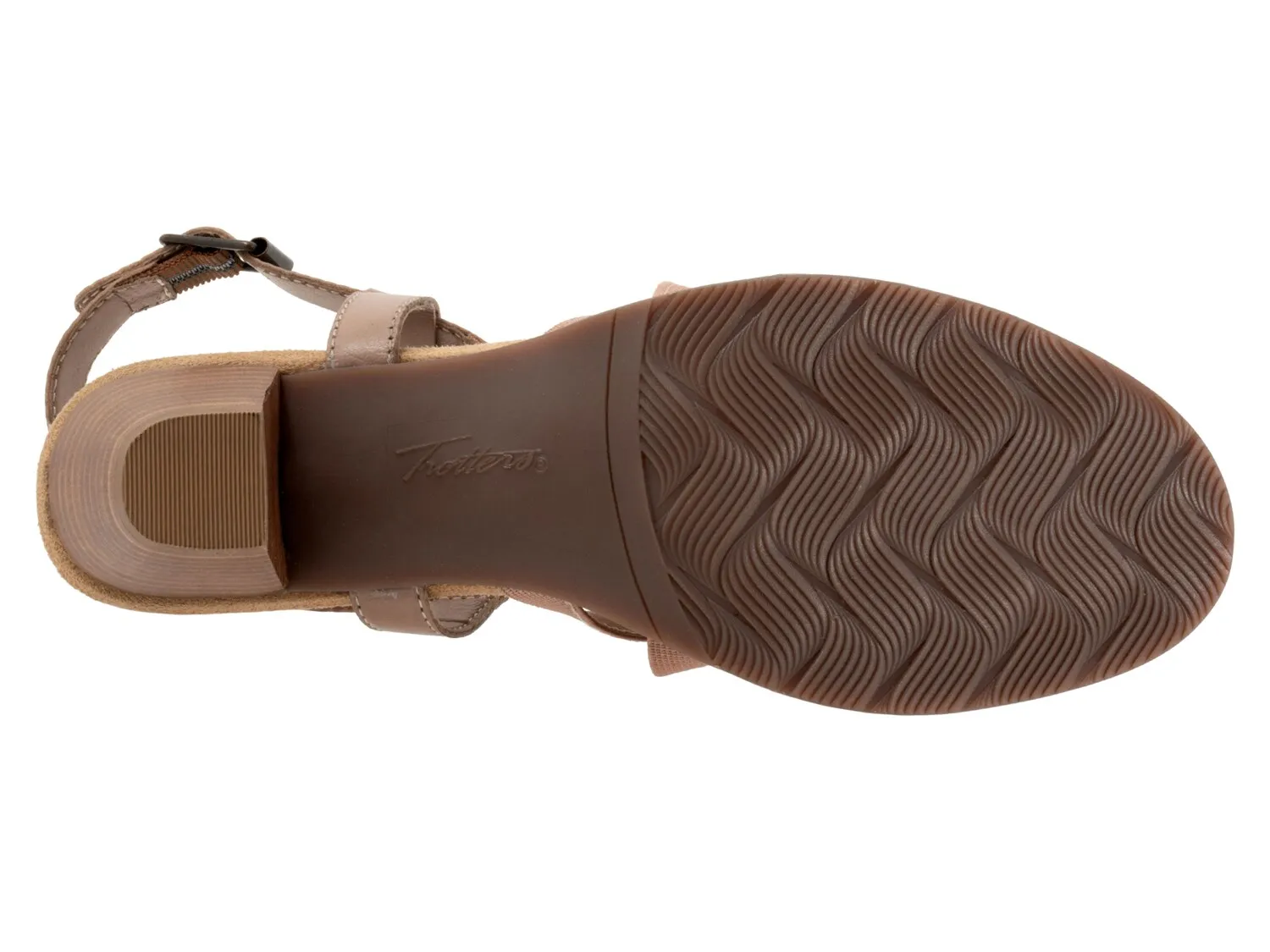 Стильные и практичные сандалии Trotters Meadow — незаменимая вещь в гардеробе. Эластичные тканевые ремешки обеспечивают комфорт в этих сандалиях из смесовой кожи, дополненных модным блочным каблуком.
