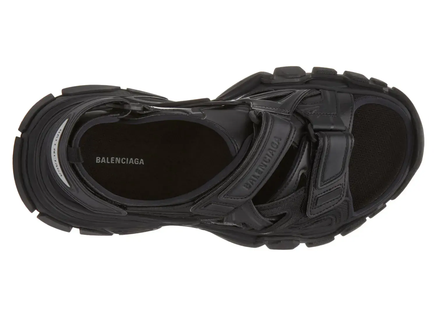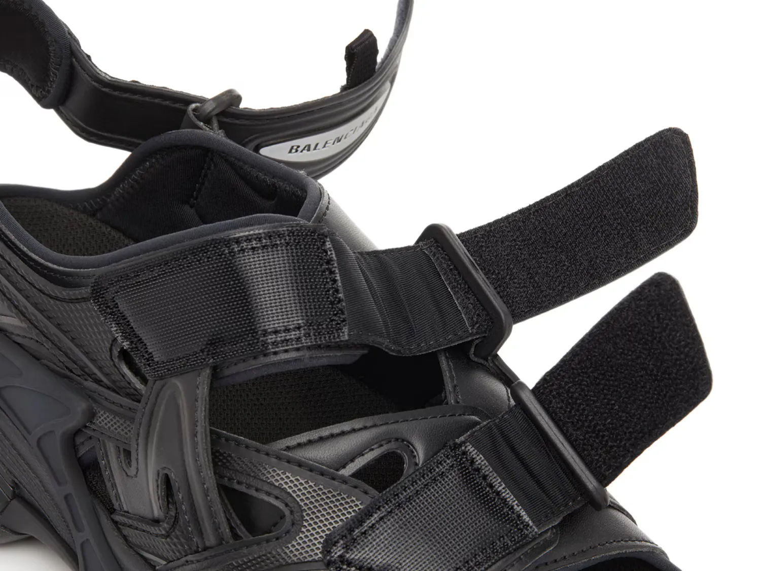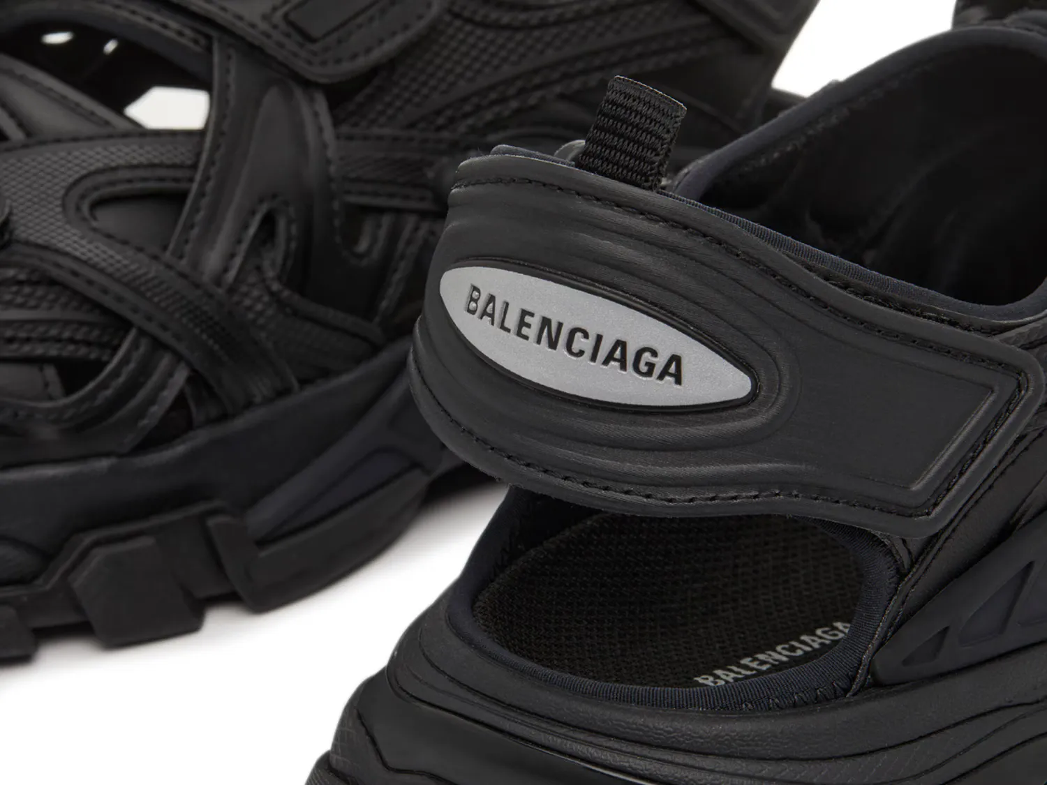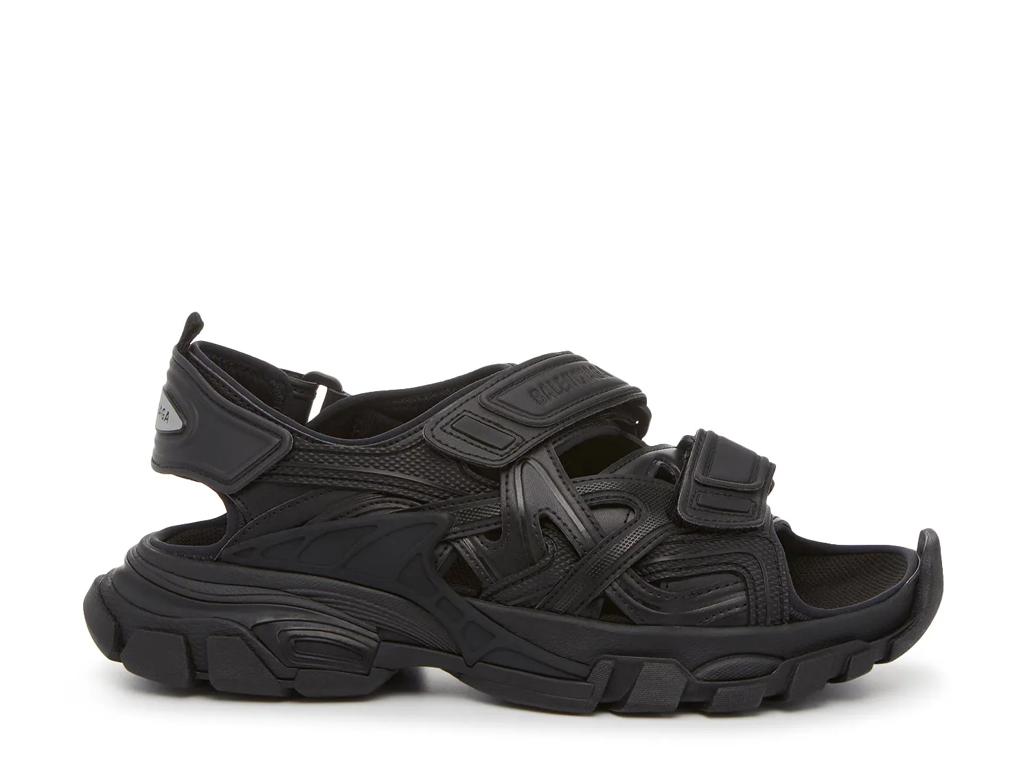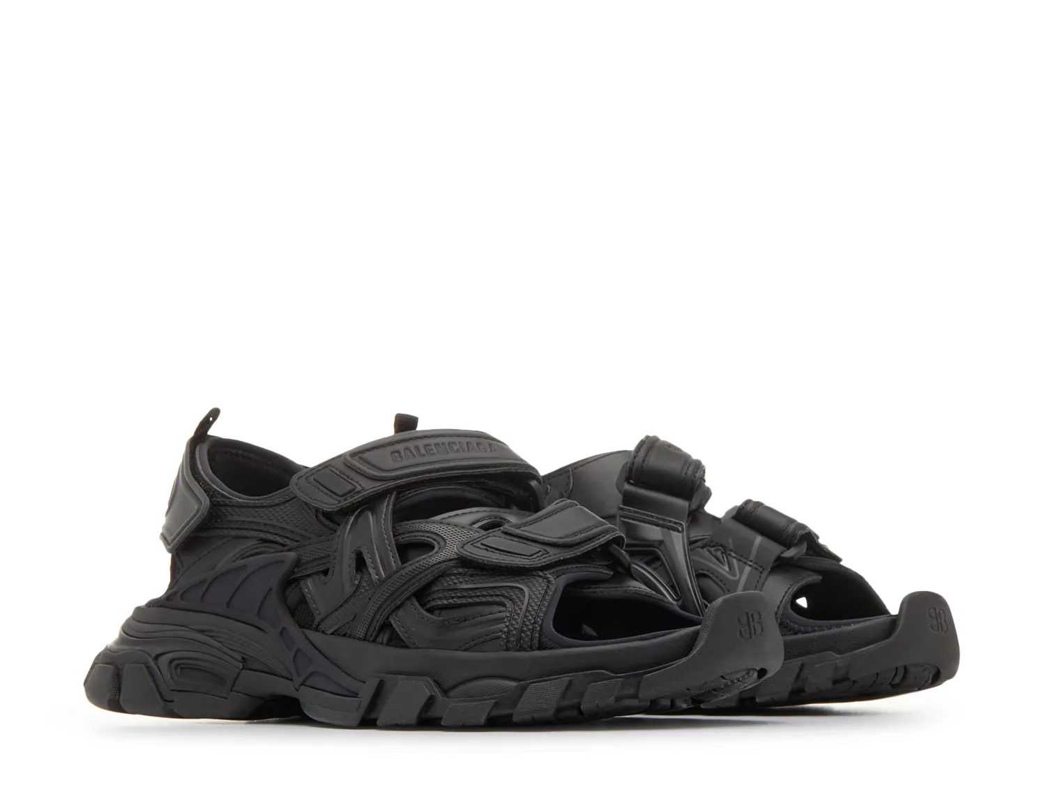 Спортивные и футуристические сандалии Track от Balenciaga добавят фактурности вашему повседневному гардеробу. Модель с ремешками обеспечивает надежную посадку, дополнена вырезами, тяговой подошвой и массивным силуэтом.