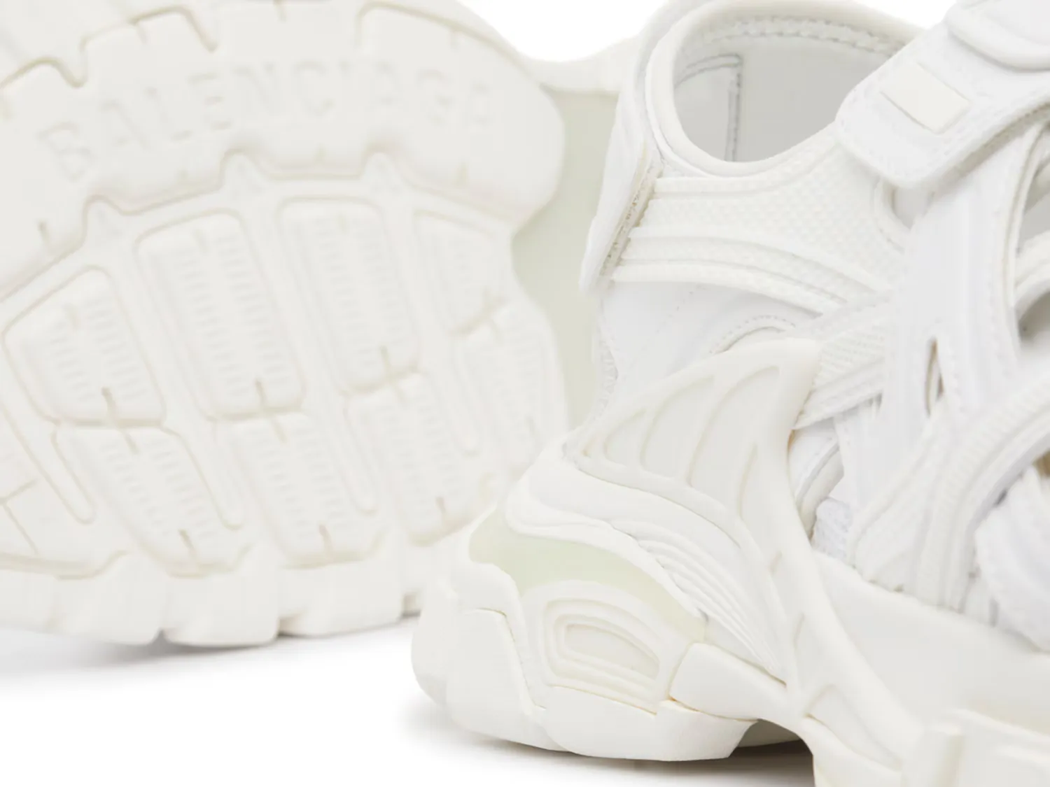 Спортивные и футуристические сандалии Track от Balenciaga добавят фактурности вашему повседневному гардеробу. Модель с ремешками обеспечивает надежную посадку, дополнена вырезами, тяговой подошвой и массивным силуэтом.