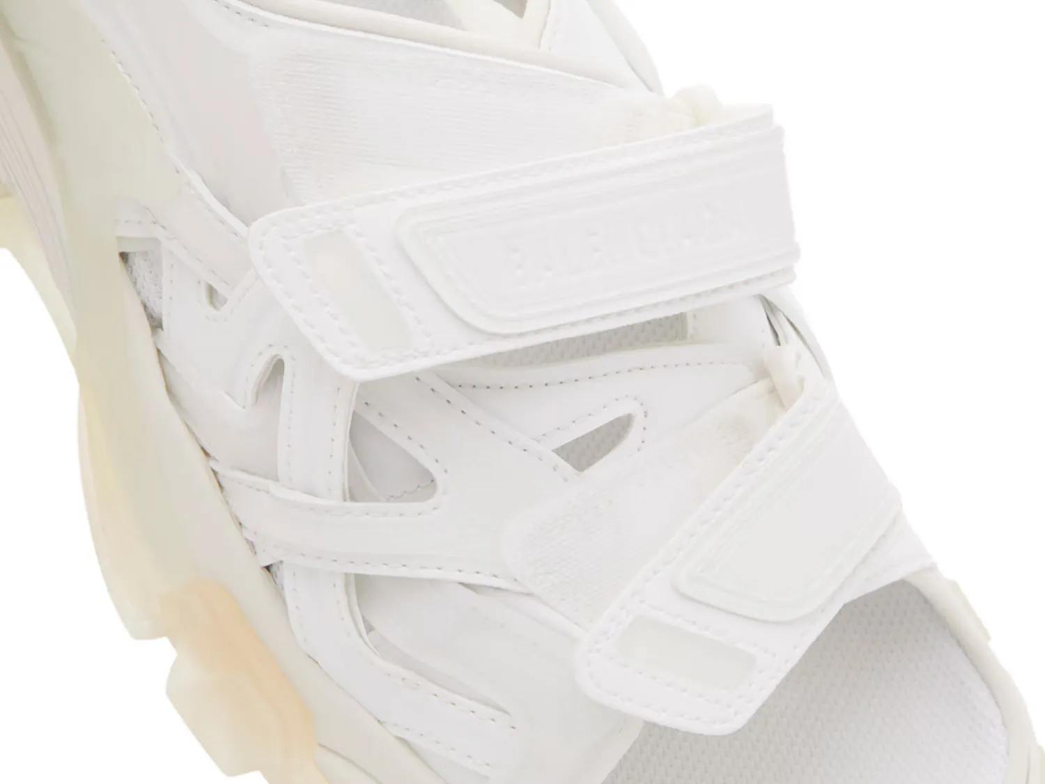 Спортивные и футуристические сандалии Track от Balenciaga добавят фактурности вашему повседневному гардеробу. Модель с ремешками обеспечивает надежную посадку, дополнена вырезами, тяговой подошвой и массивным силуэтом.