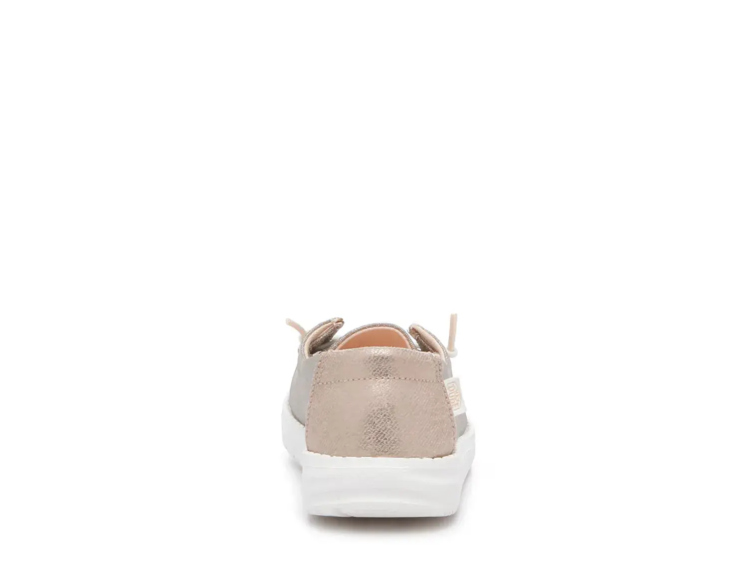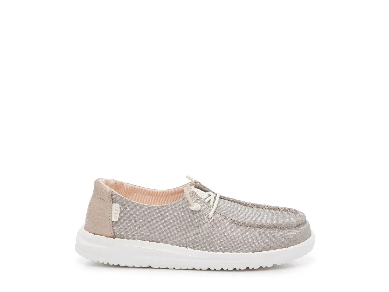 Кроссовки-слипоны Wendy — идеальная пара для игр. Эти кроссовки Hey Dude имеют повседневный силуэт, удобную застежку без помощи рук и мягкую стельку, что делает их идеальными для повседневного ношения. В комплекте с игривым блестящим верхом, который подчеркивает их внешний вид.