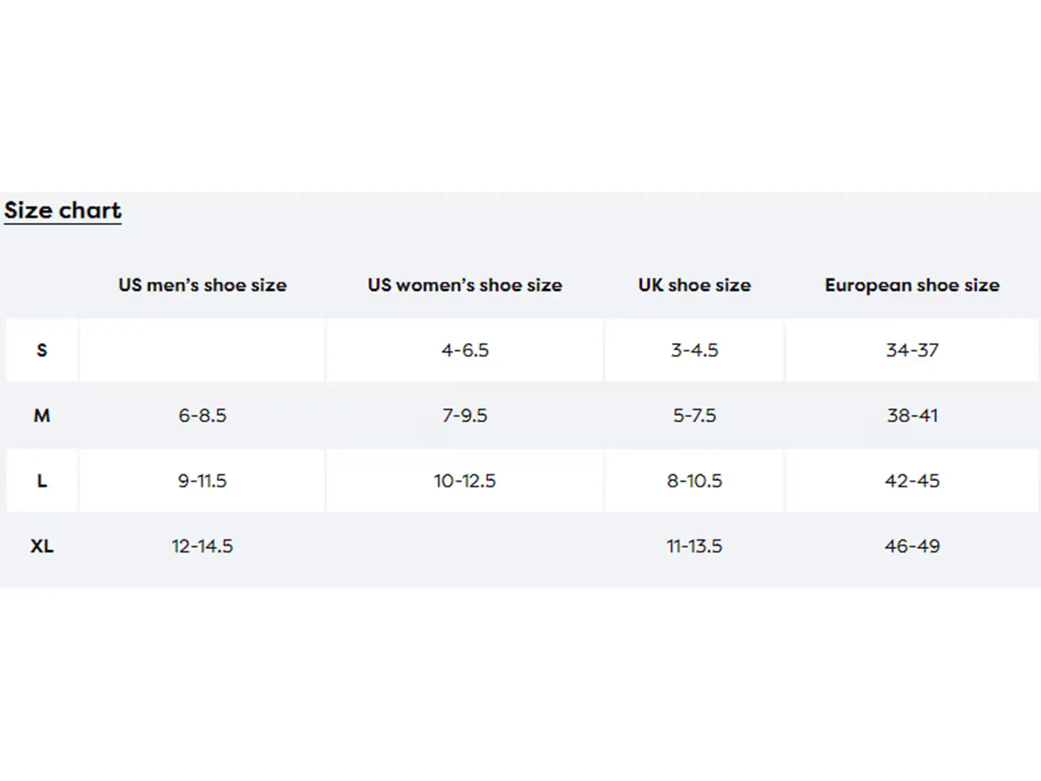• L: подходит для женской обуви размером 10–12,5 или мужской обуви размером 9–11,5.
