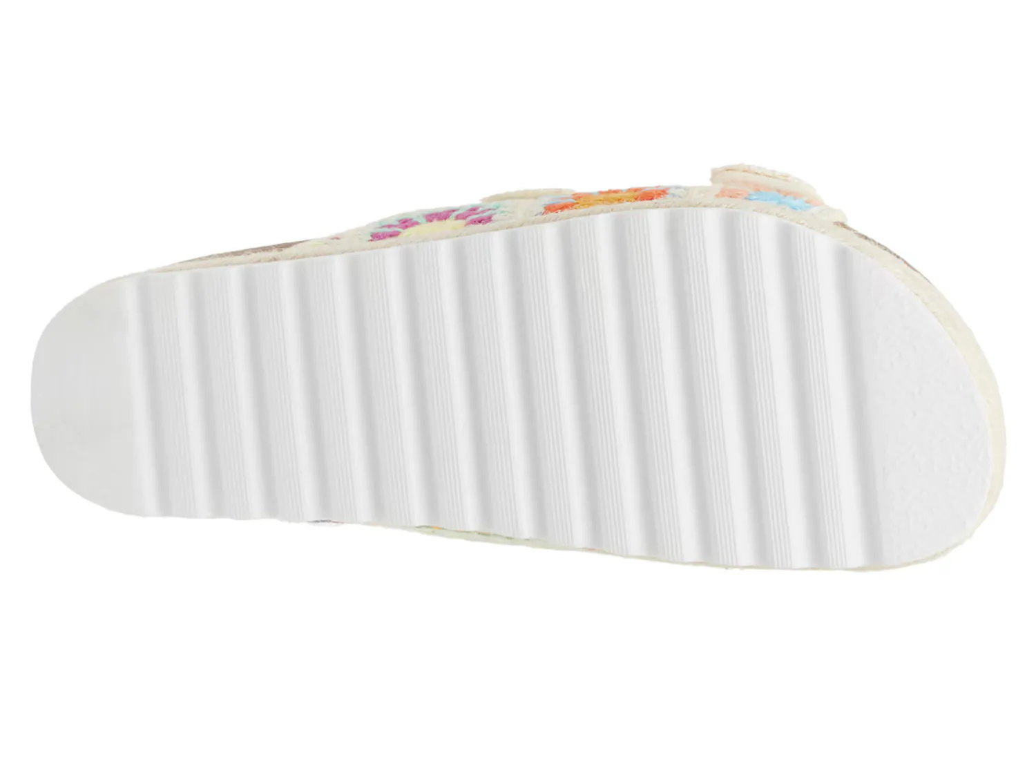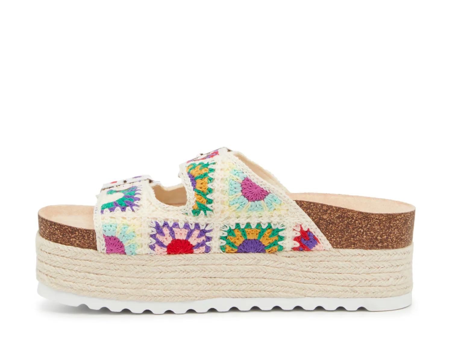Теперь вы можете охватить тенденцию вязания крючком с головы до пят... в буквальном смысле. Сандалии Pretends от Dirty Laundry имеют межподошву в форме эспадрильи, дизайн на платформе и цветочную отделку вдоль верха из тканого материала.