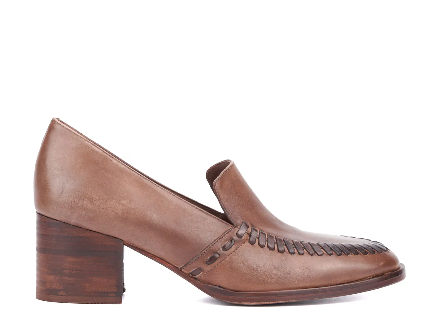 Пусть ваши ноги говорят сами за себя с насосом Elaine от Vintage Foundry. Дизайн в стиле лоферов с эффектной декоративной строчкой придает этим кожаным слипонам модный вид. Высокий каблук дополнит образ.
