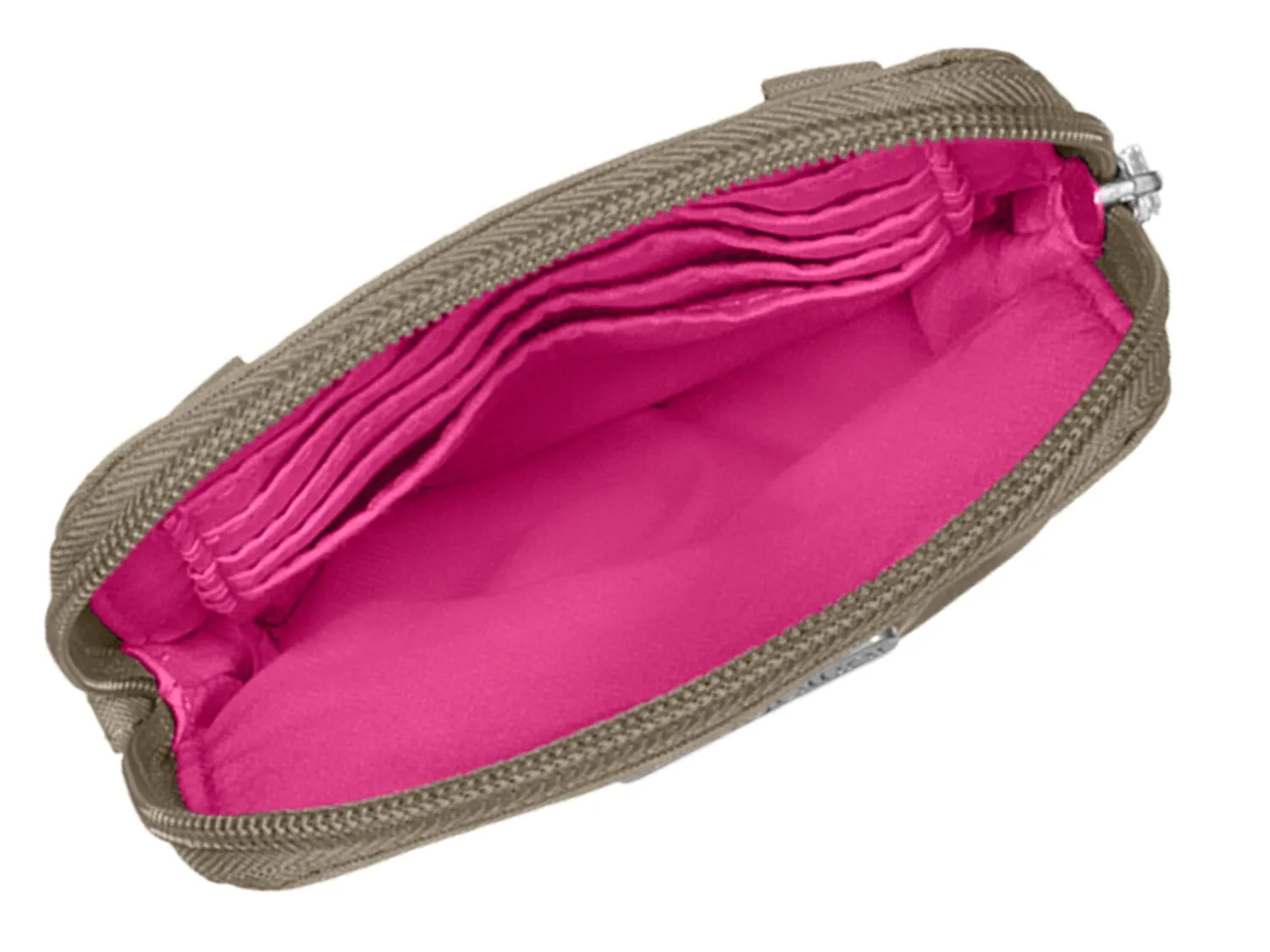 Путешествуйте налегке с сумкой через плечо Bryant от Baggallini. В этой сумке достаточно места для наличных денег и карт, а также используется технология RFID, обеспечивающая безопасность вашей личности.
