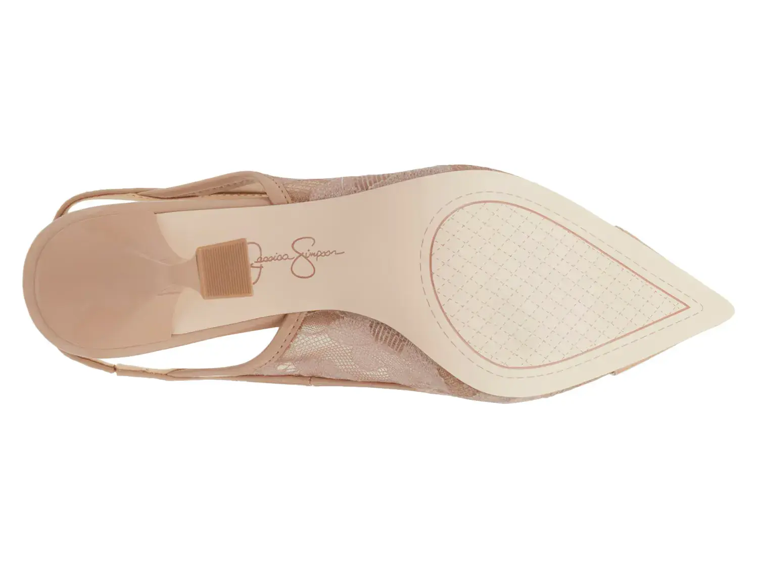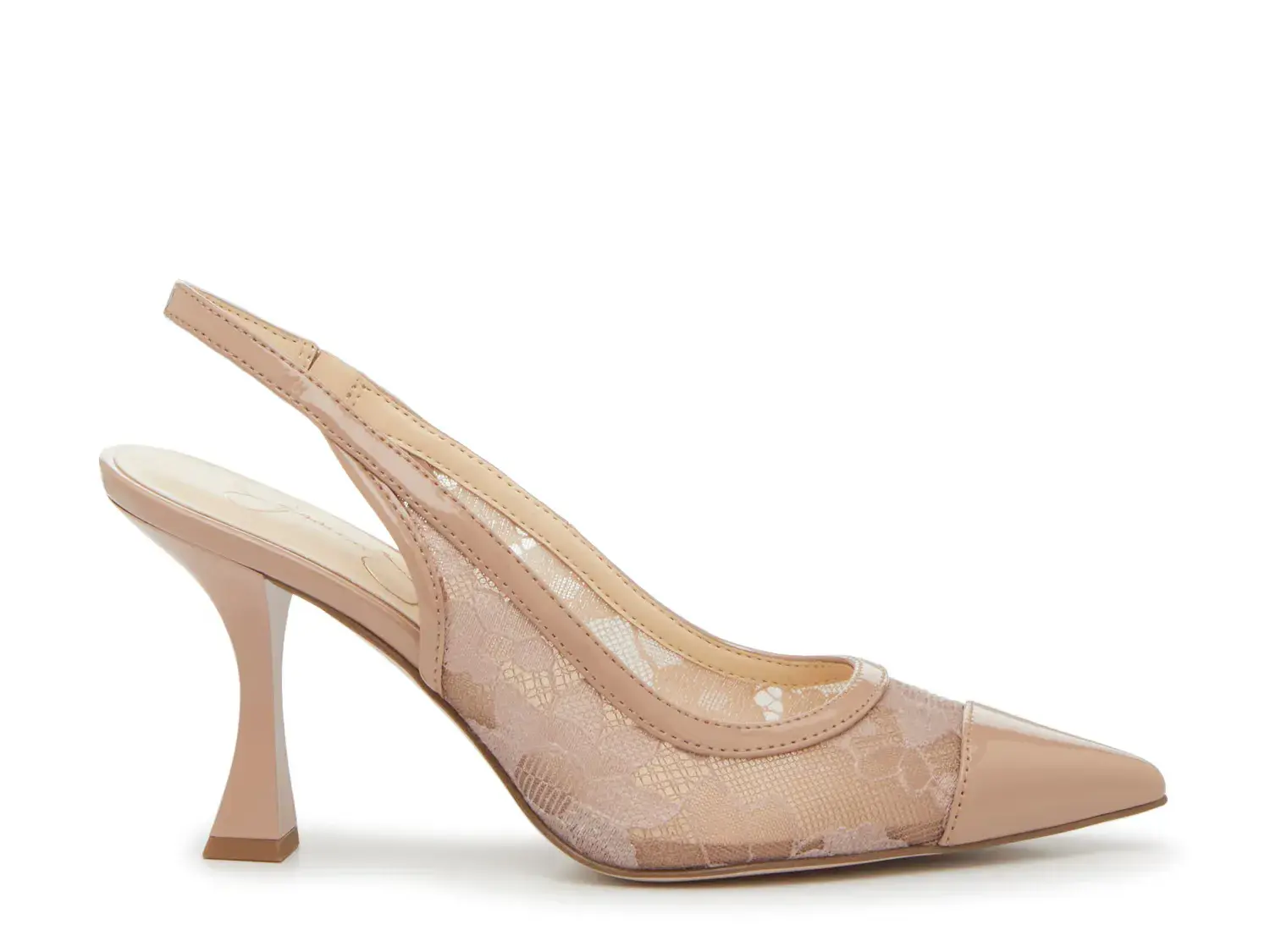 Туфли Fiomina от Jessica Simpson с изящной пяткой на пятке и блестящим мыском дополнят любой стиль. Эта пара с кружевным цветочным узором и забавным расклешенным каблуком придаст вашему образу женственность.