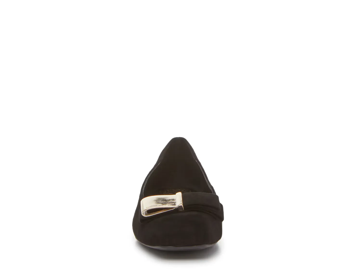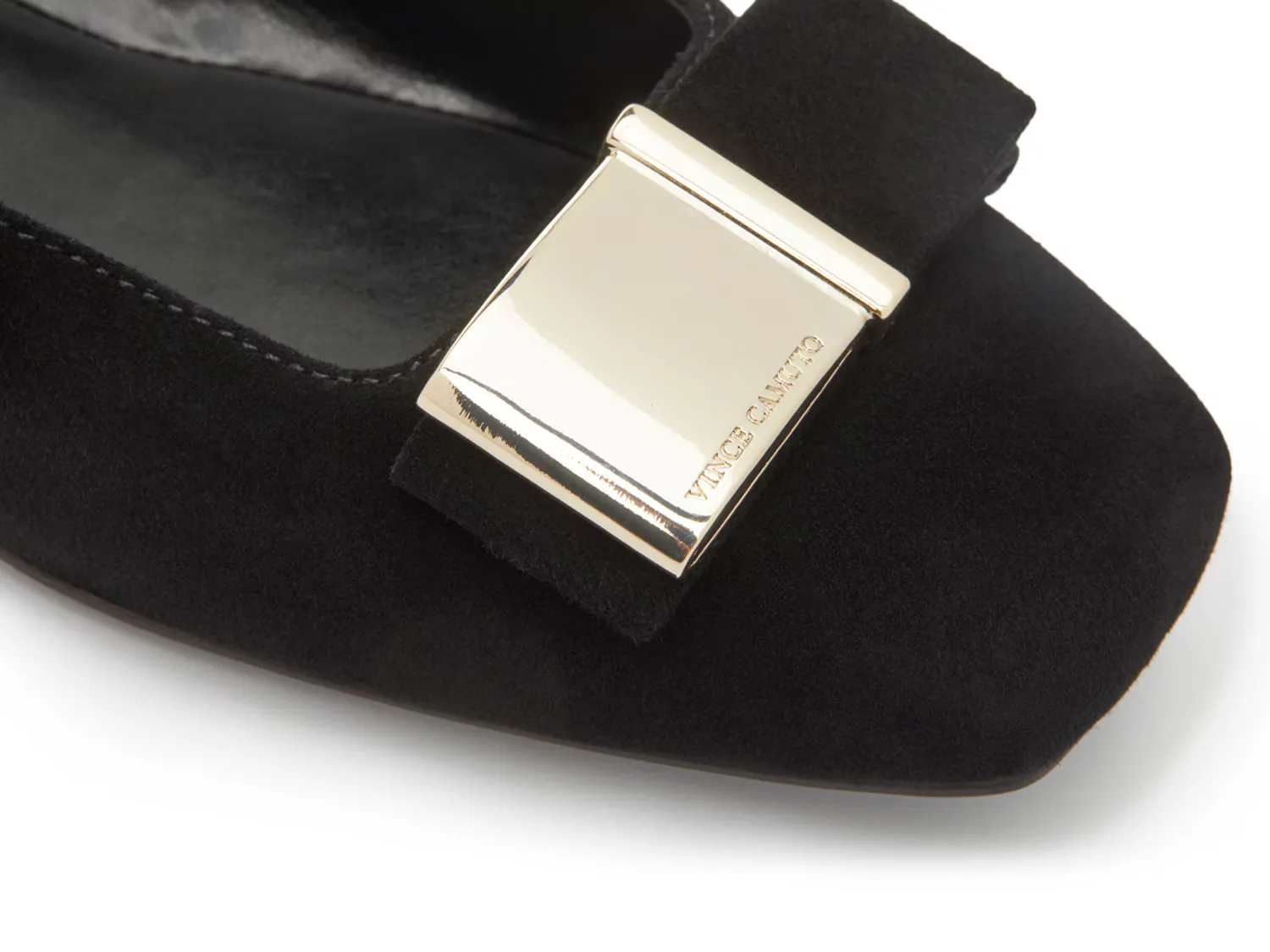 Балетки Veriyla от Vince Camuto с золотистым акцентом, квадратным носком и милым бантиком совсем не просты. Эта стильная замшевая пара имеет классический силуэт, но дополнена качественными деталями, которые придадут изысканность любому образу.
