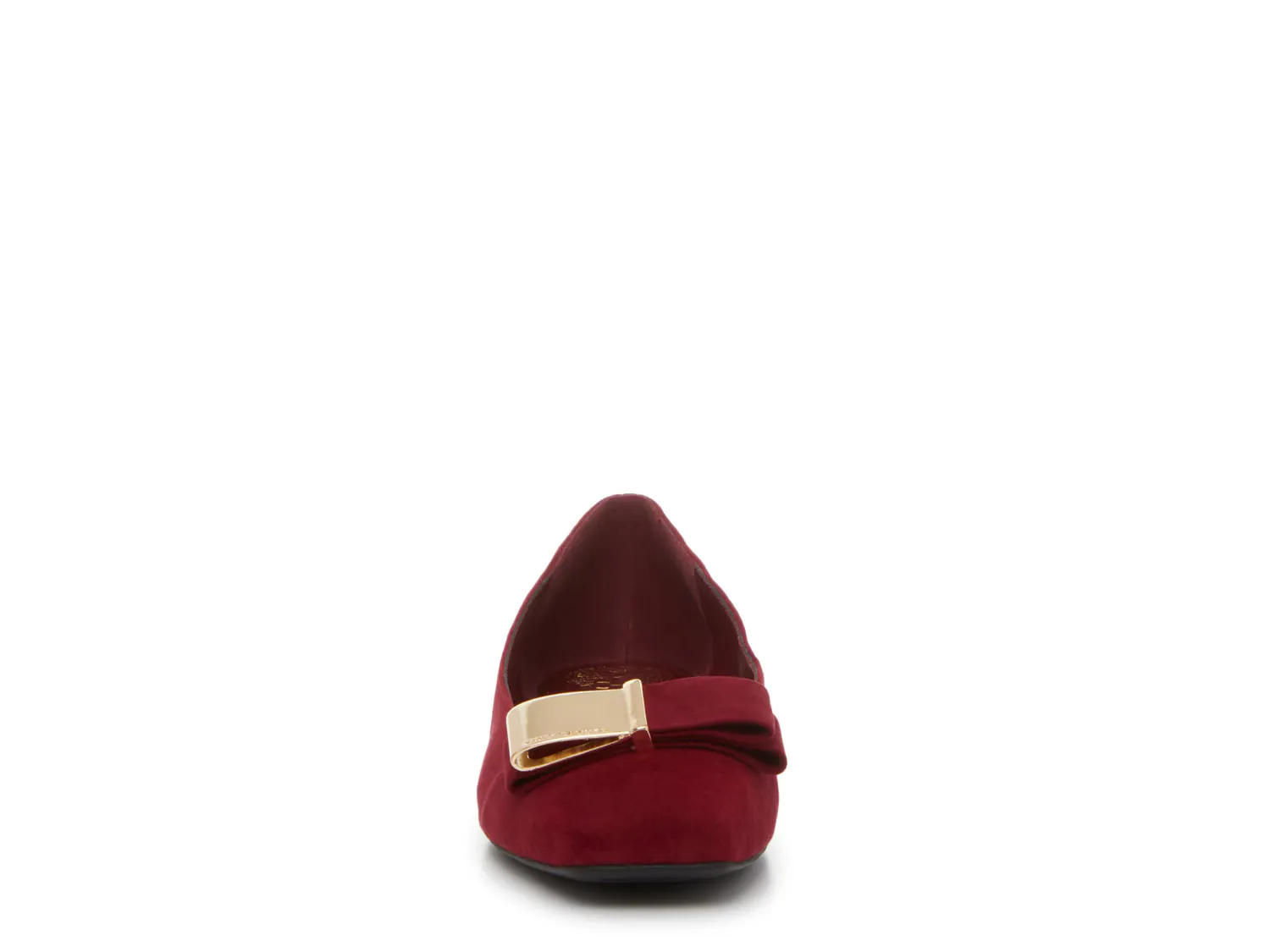 Балетки Veriyla от Vince Camuto с золотистым акцентом, квадратным носком и милым бантиком совсем не просты. Эта стильная замшевая пара имеет классический силуэт, но дополнена качественными деталями, которые придадут изысканность любому образу.