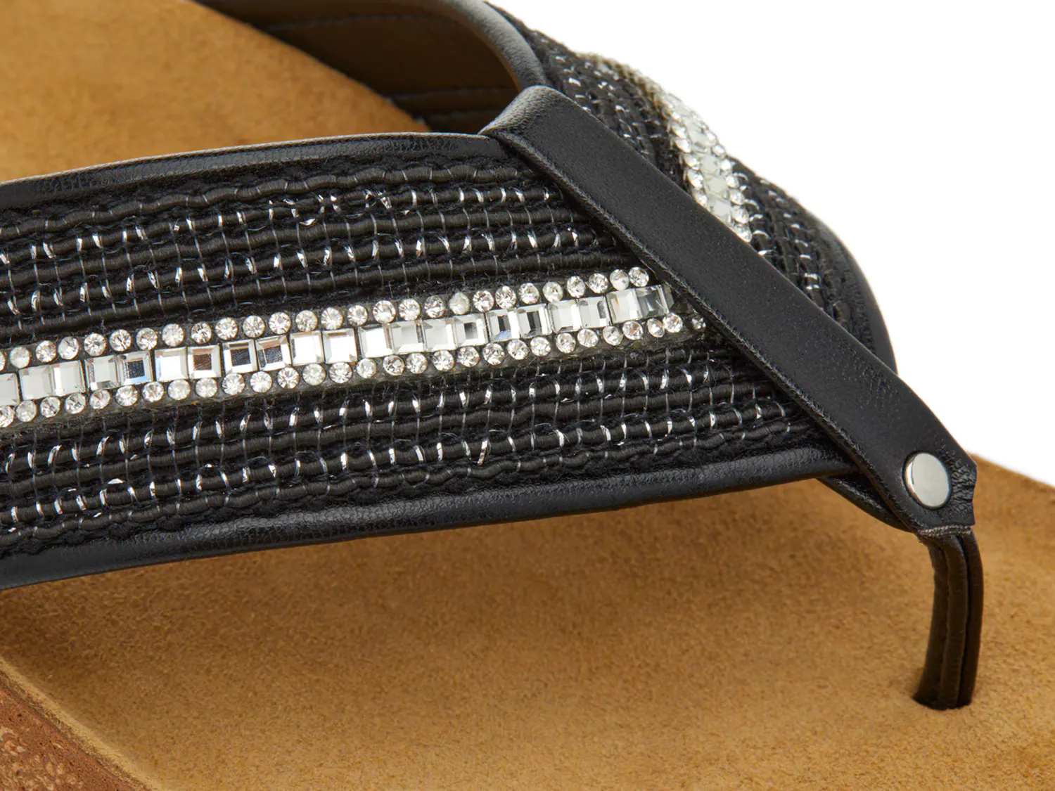 Добавьте гламурности к пляжному образу с помощью сандалий Nessa от итальянских обувщиков. Повседневный силуэт шлепанцев отличается легкодоступной конструкцией без шнуровки и удобной мягкой стелькой. Украшены стразами вдоль ремешков и серебристыми деталями.