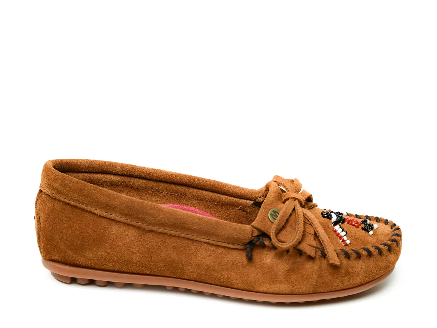 Лоферы Minnetonka Thunderbird Animikii созданы индейским дизайнером из Миннеаполиса Люси Скьефте. Эта пара из бисера, изготовленная из мягкой замши, имеет мягкую пенопластовую стельку и прочную резиновую подошву для надежной и удобной посадки.
