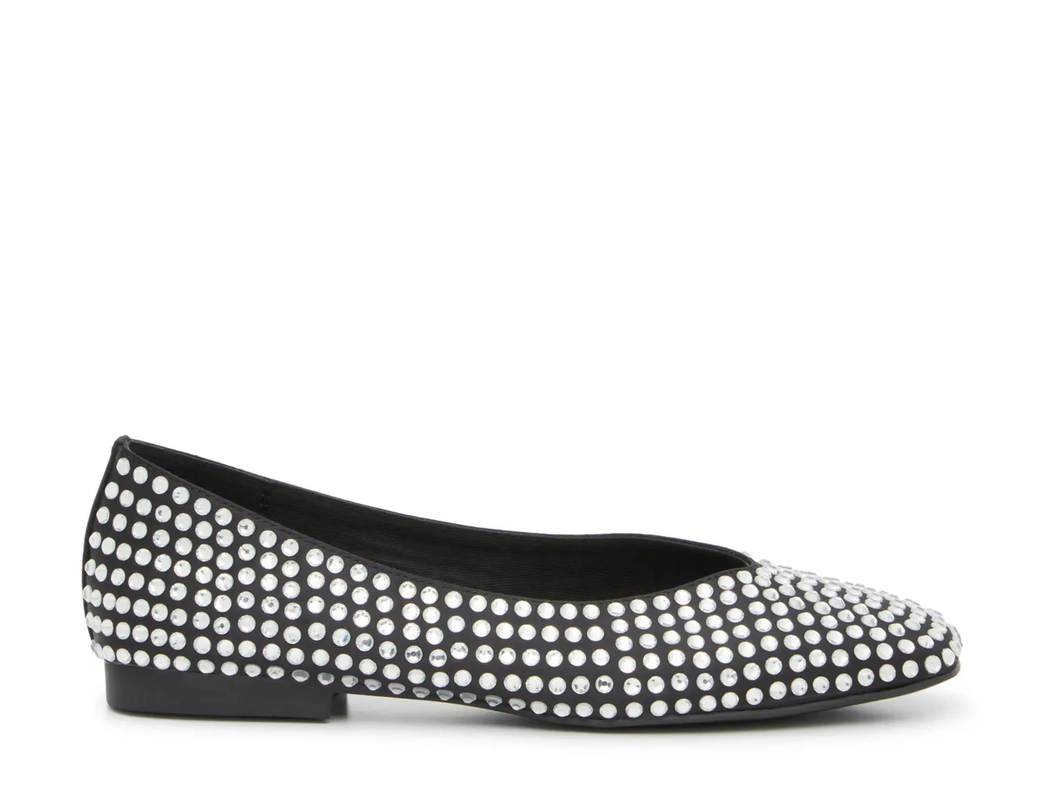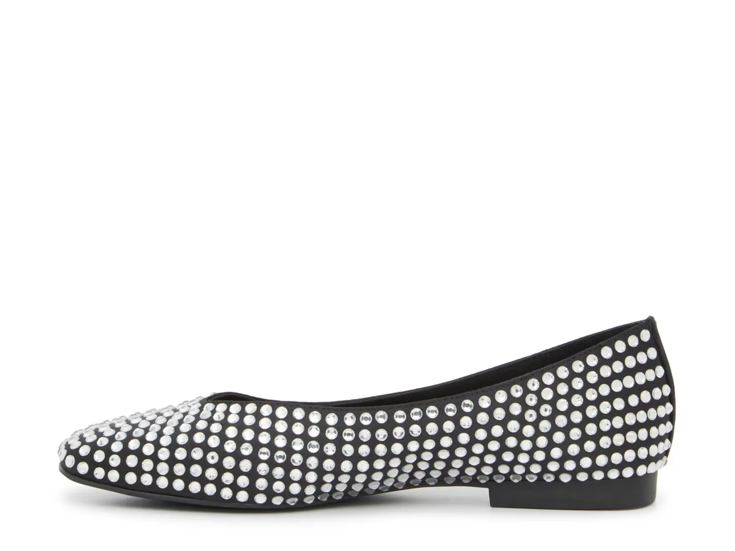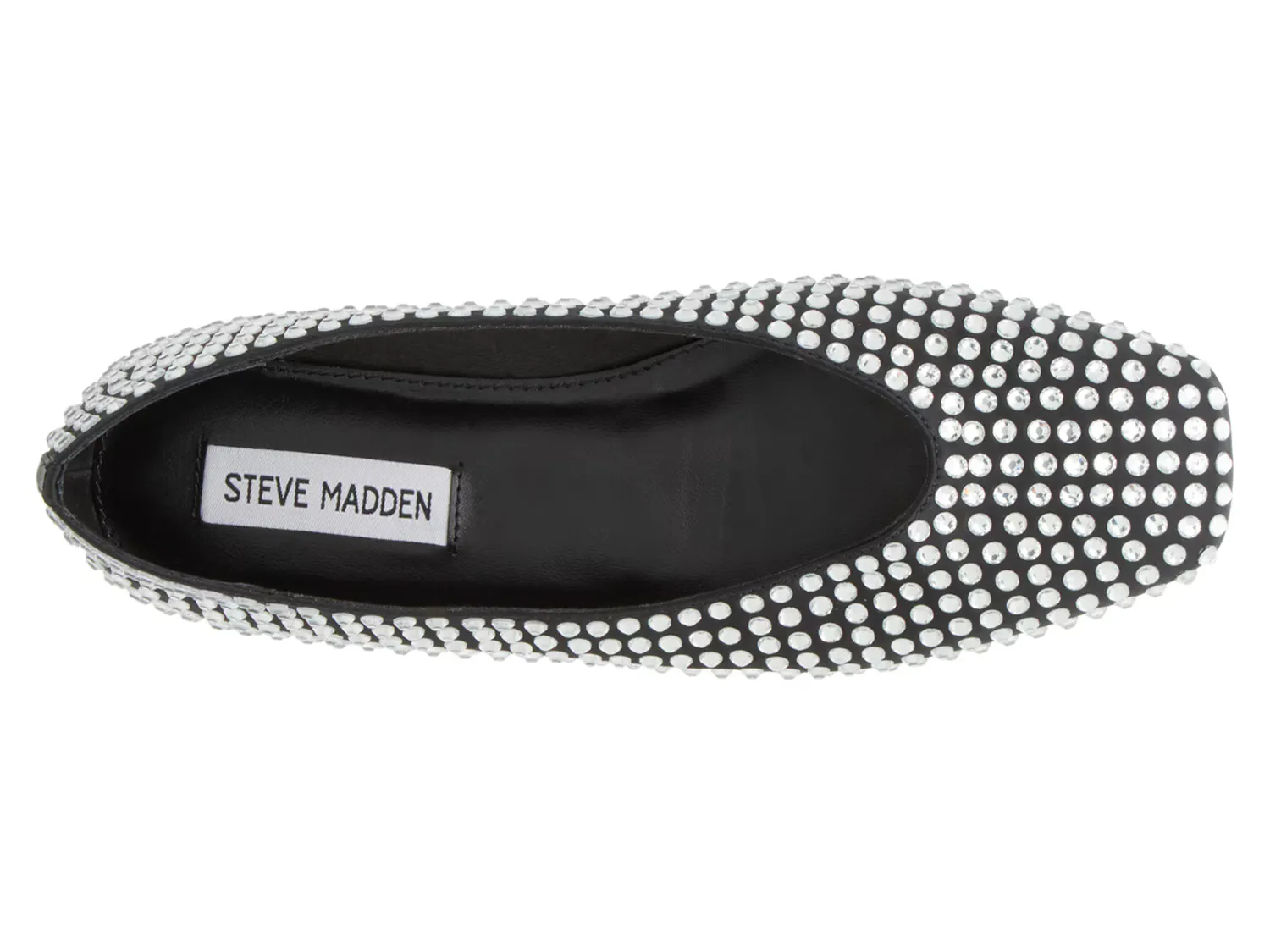Убедитесь, что ваши шаги сияют, надев балетки Delphine от Стива Мэддена. Этот простой стиль дополнен современным дизайном с квадратным носком и сверкающими стразами, которые добавляют нотку гламура.