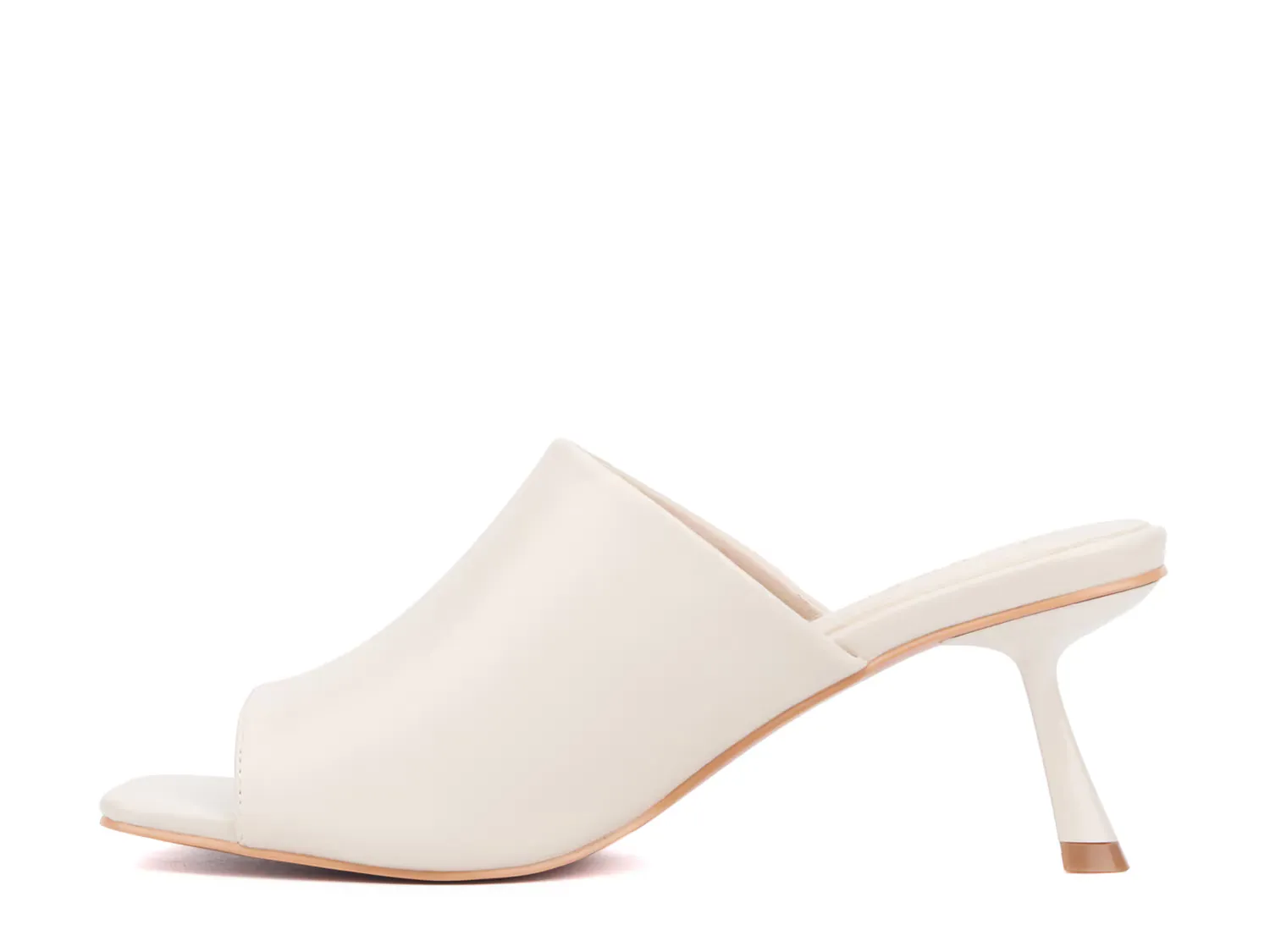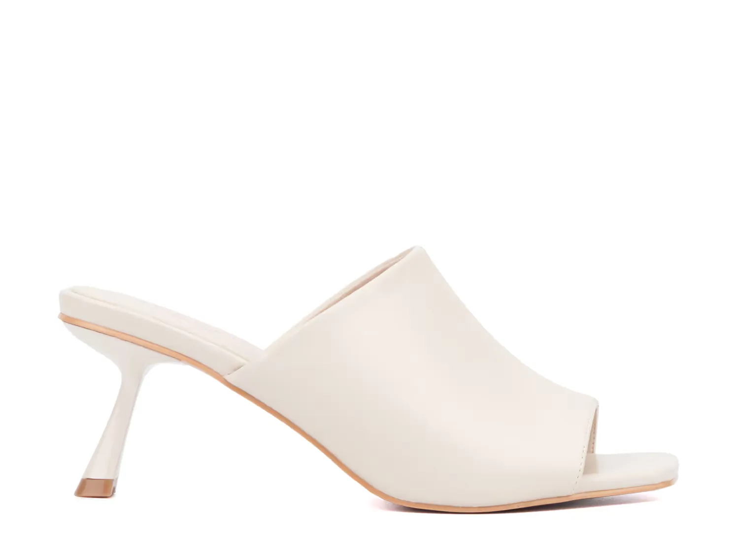 Подчеркните несколько летних ансамблей сандалиями Idina от TORGEIS. Эта пара в стиле мюлей отличается острым силуэтом с квадратным носком и скошенным каблуком, который поднимает настроение.
