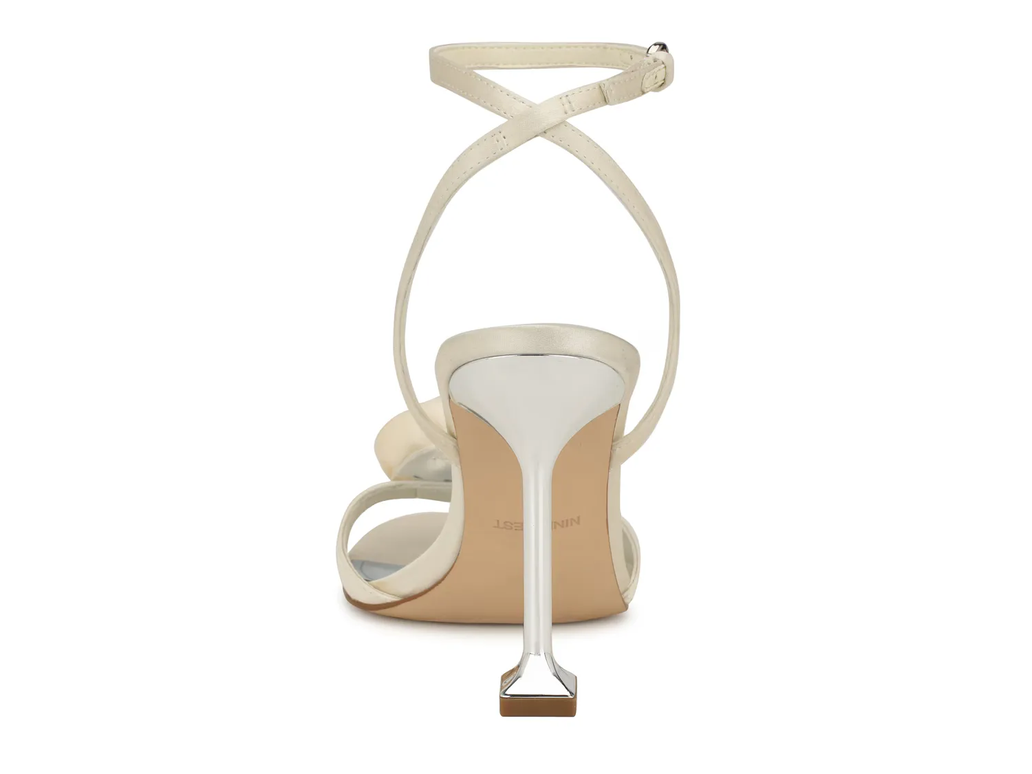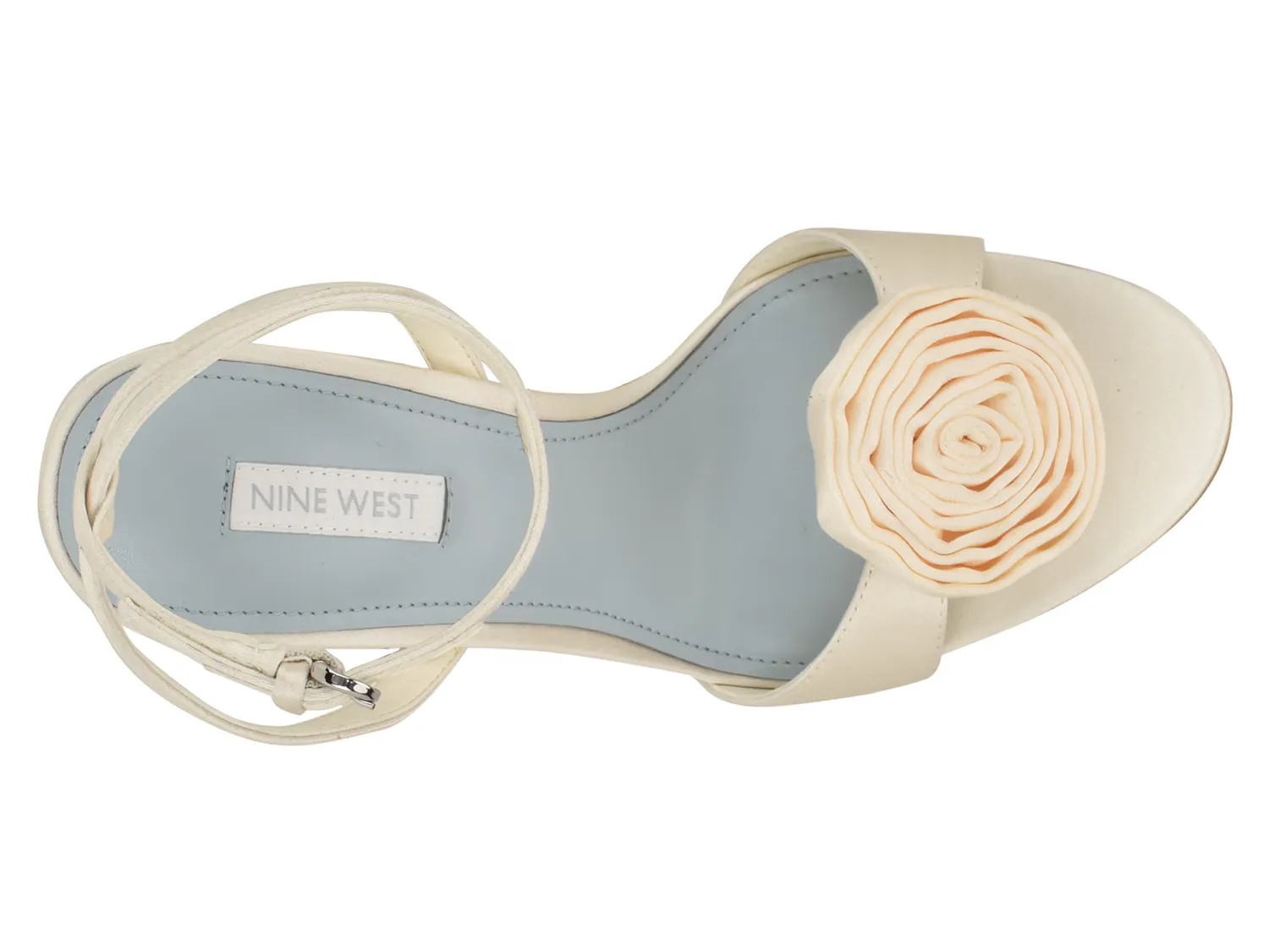 Любой наряд расцветится, если дополнить его босоножками Neve. Эта атласная пара от Nine West имеет скульптурный каблук, изящный ремешок на щиколотке и розетку вдоль носка.