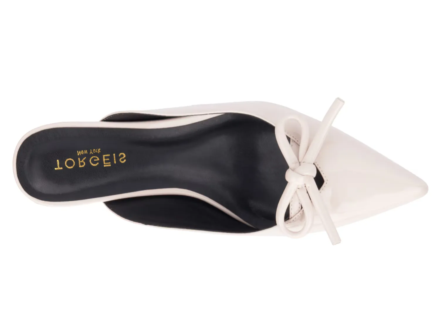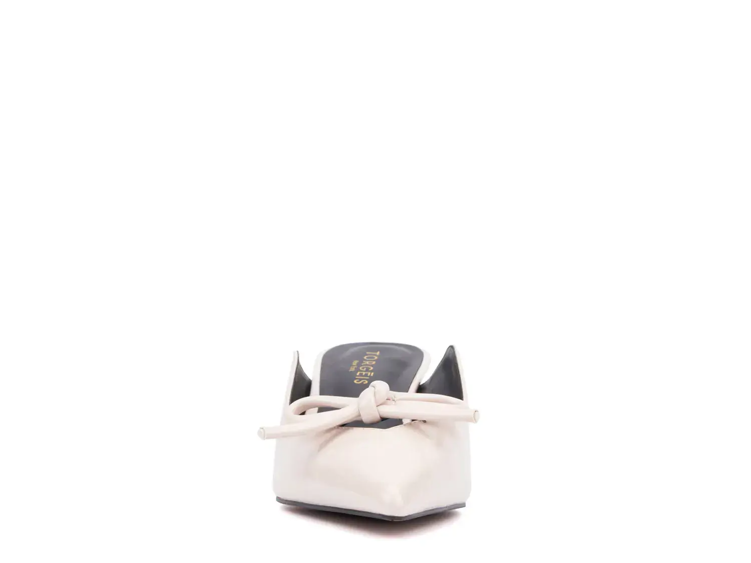 Добавьте к своей рабочей одежде или деловому ансамблю мюли Tamyra от TORGEIS. Заостренный силуэт, бантик и скошенный каблук создают изящный, но изящный акцент.