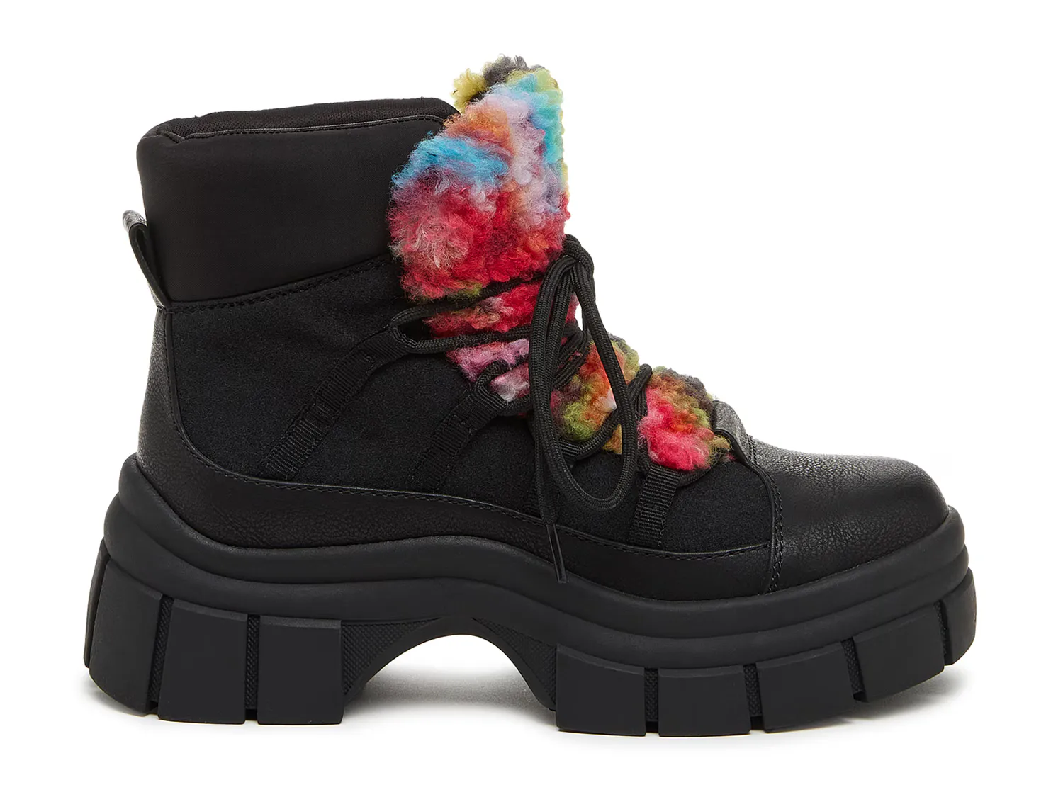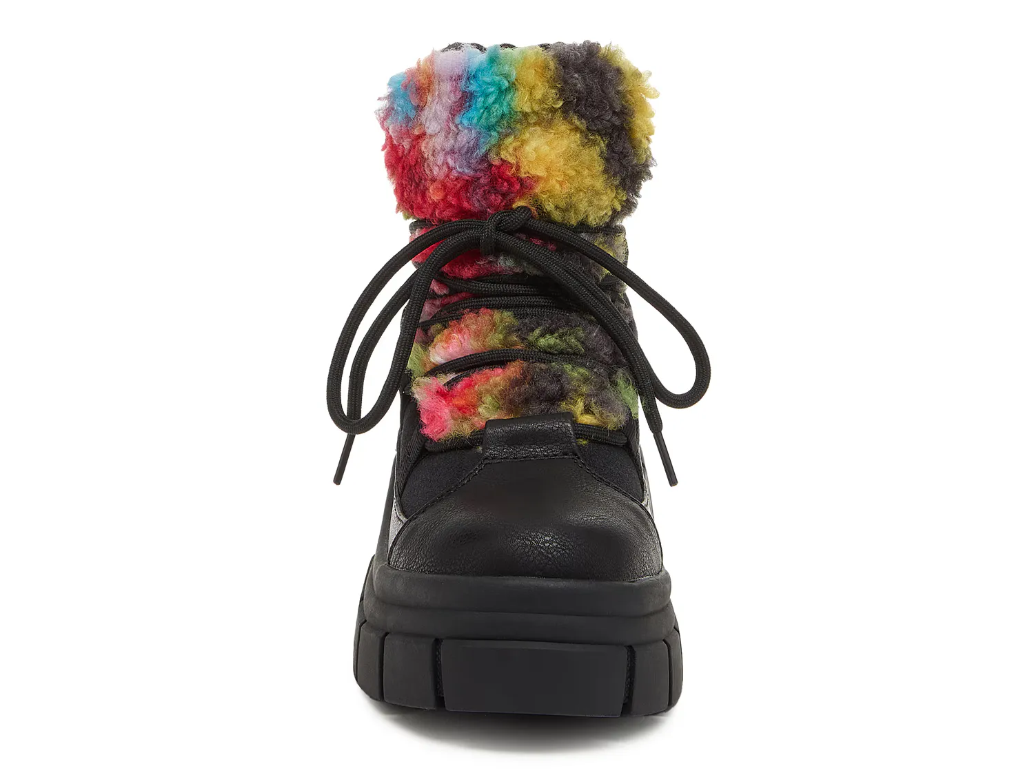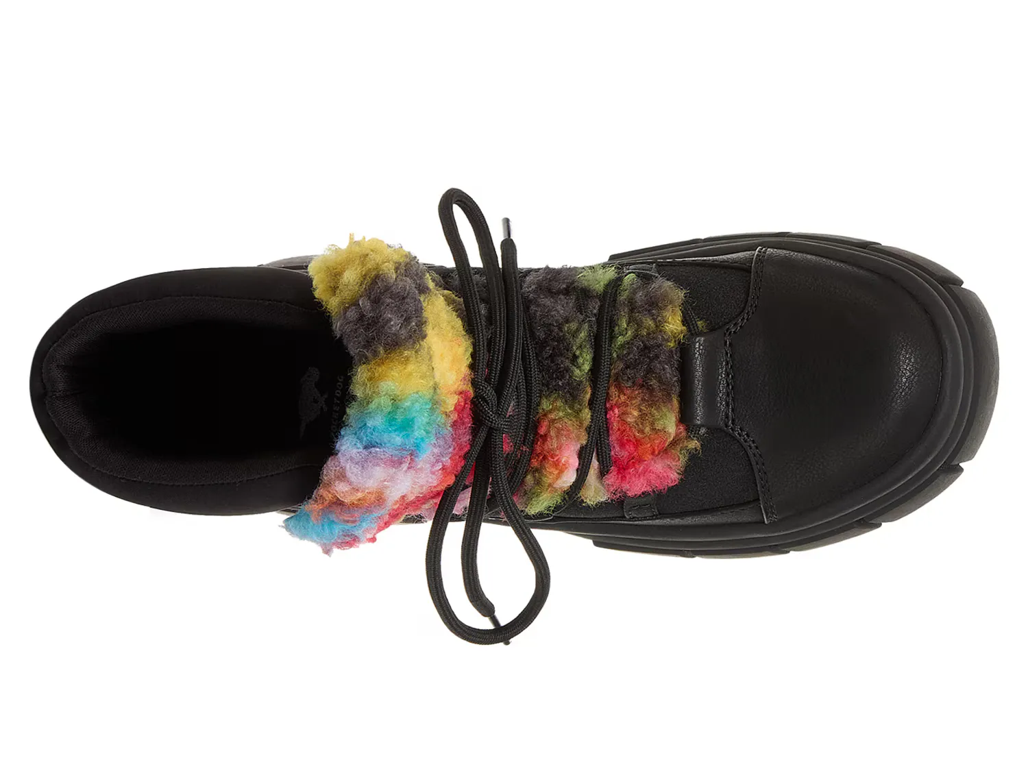 Украсьте свой наряд ботинками Rocket Dog Tiger. Меховой язычок радужного цвета придает привлекательный вид этим ботинкам на шнуровке, синтетической подошве с небольшим выступом и массивной платформе для большей привлекательности и сцепления.