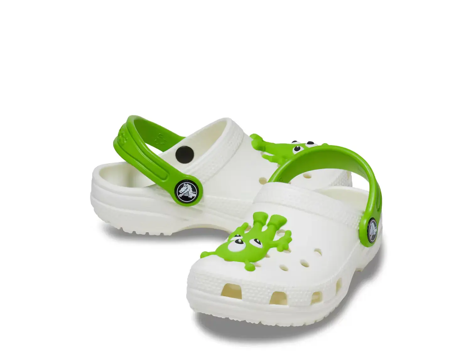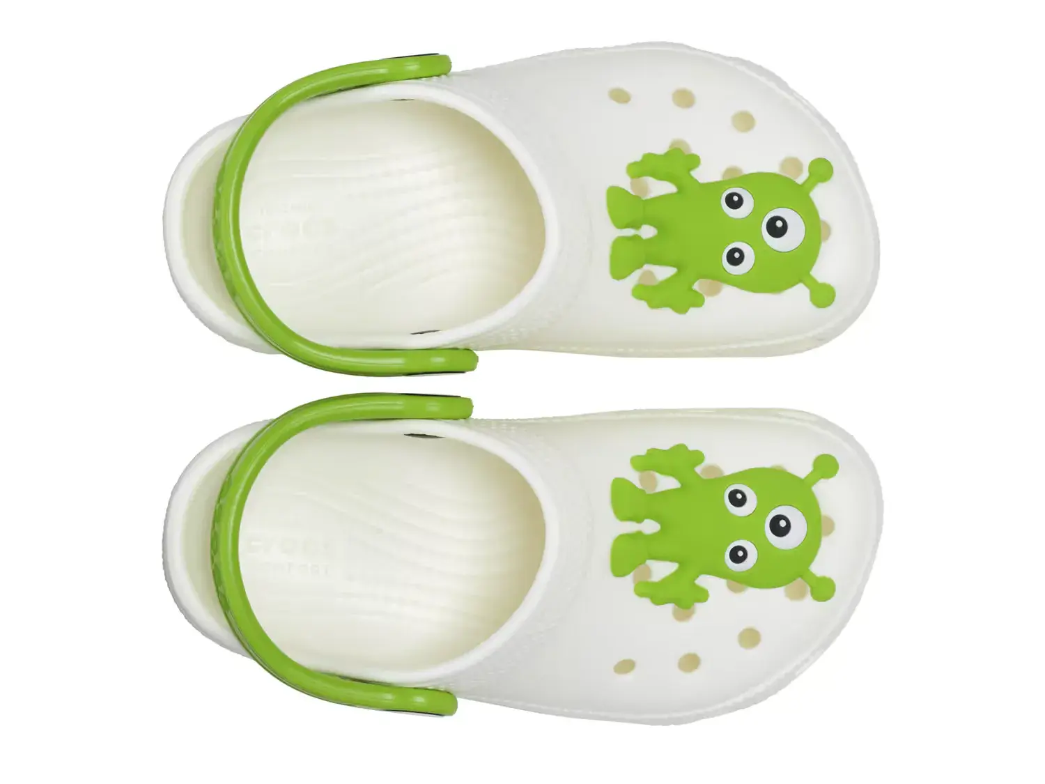 Добавьте немного необычного стиля в повседневный образ вашего маленького космонавта с помощью сабо Classic Glow Alien от Crocs. Светящийся в темноте материал и инопланетные украшения привлекают внимание днем ​​и ночью, а удобный дизайн из этиленвинилацетата обеспечивает удобную посадку.