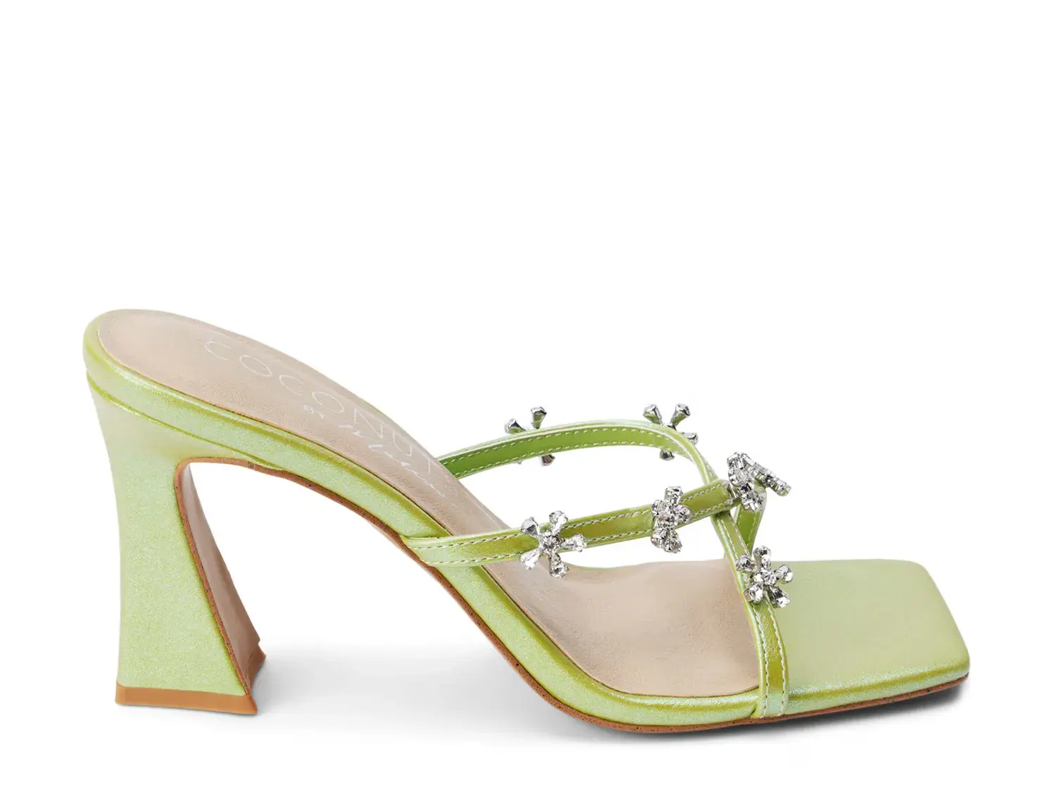 Расправьтесь как принцесса в сандалиях Levi от Coconuts. Цветочные украшения из кристаллов красиво сидят на тонких перекрещивающихся ремешках, делая эти веганские сандалии неземными, куда бы вы ни пошли. Квадратный носок спереди придает стильный вид.