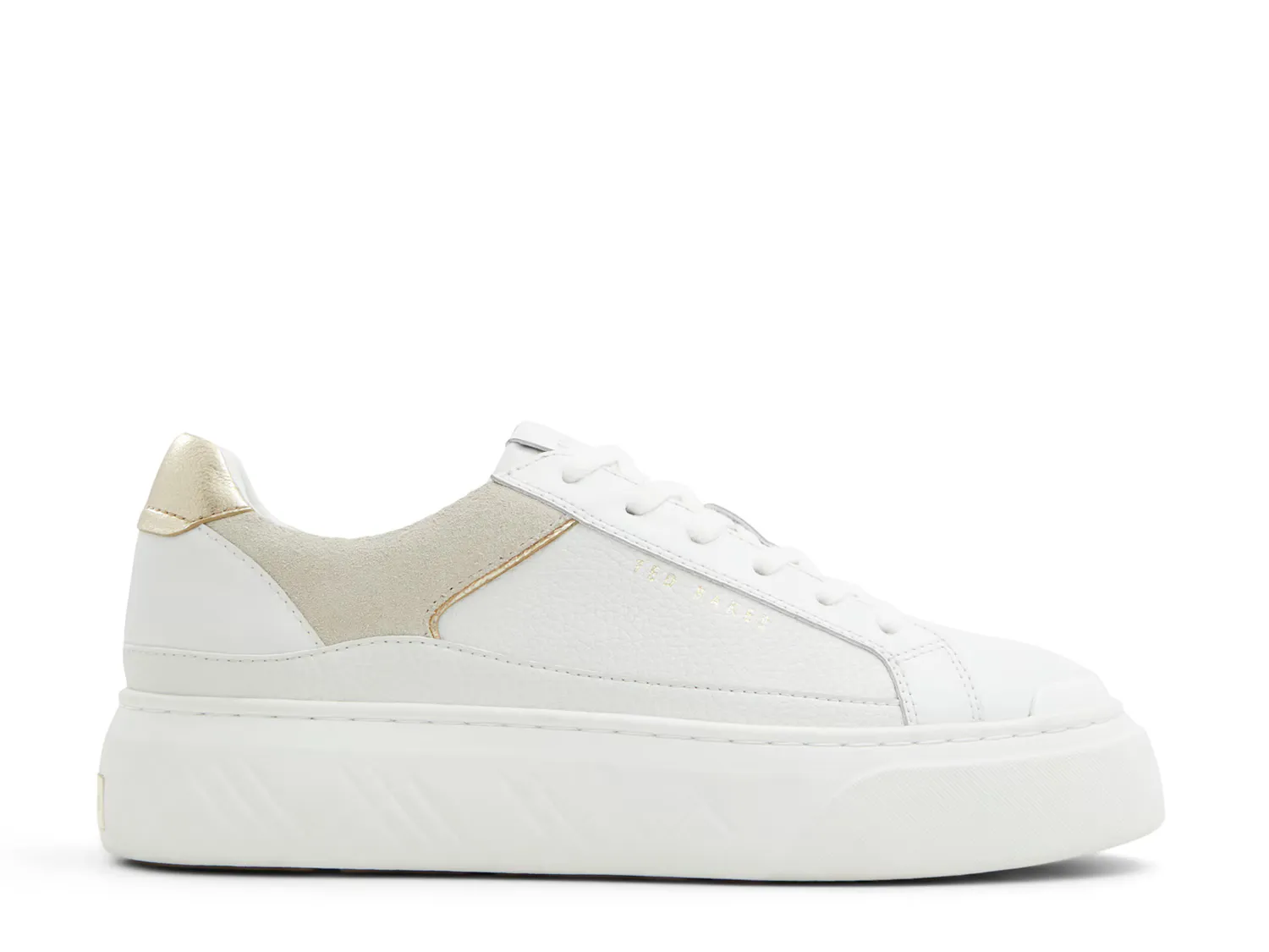 Украсьте свой уличный стиль кроссовками на платформе Adison от Ted Baker. Эти кроссовки на шнуровке с кожаным верхом, украшенным яркими контрастными акцентами, бросаются в глаза на каждом шагу.