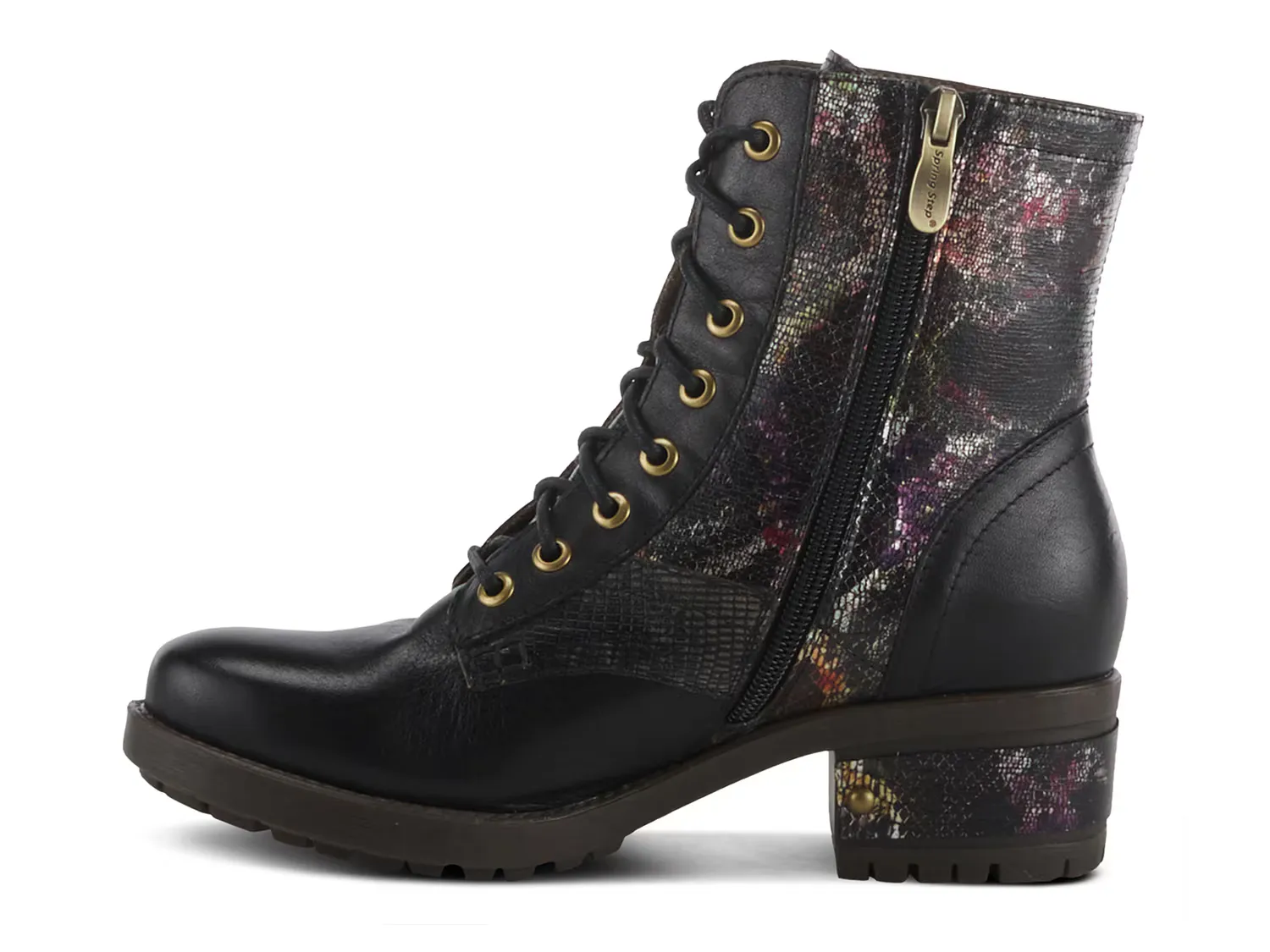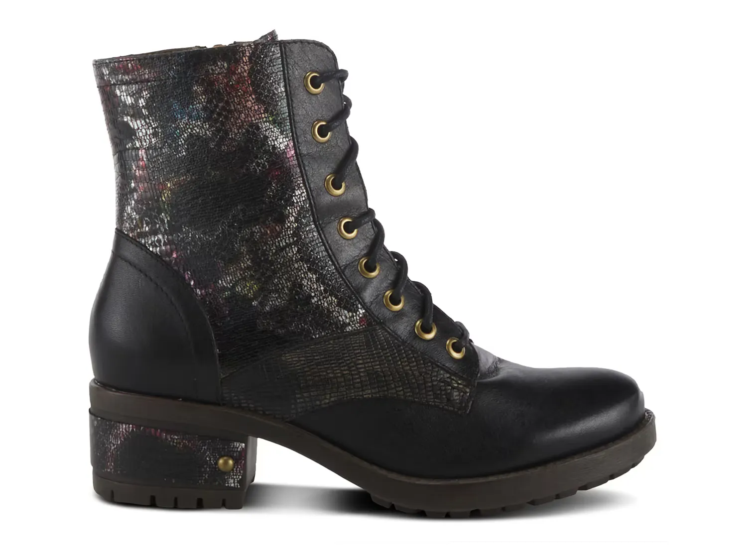 Ботильоны Marty Met от L'Artiste от Spring Step — классический боевой силуэт со свежими обновлениями. Верх с принтом дополнен блочным каблуком в тон с заклепками, которые подойдут вашим новым ботильонам.