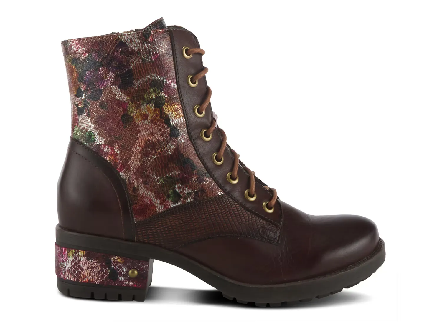 Ботильоны Marty Met от L'Artiste от Spring Step — классический боевой силуэт со свежими обновлениями. Верх с принтом дополнен блочным каблуком в тон с заклепками, которые подойдут вашим новым ботильонам.
