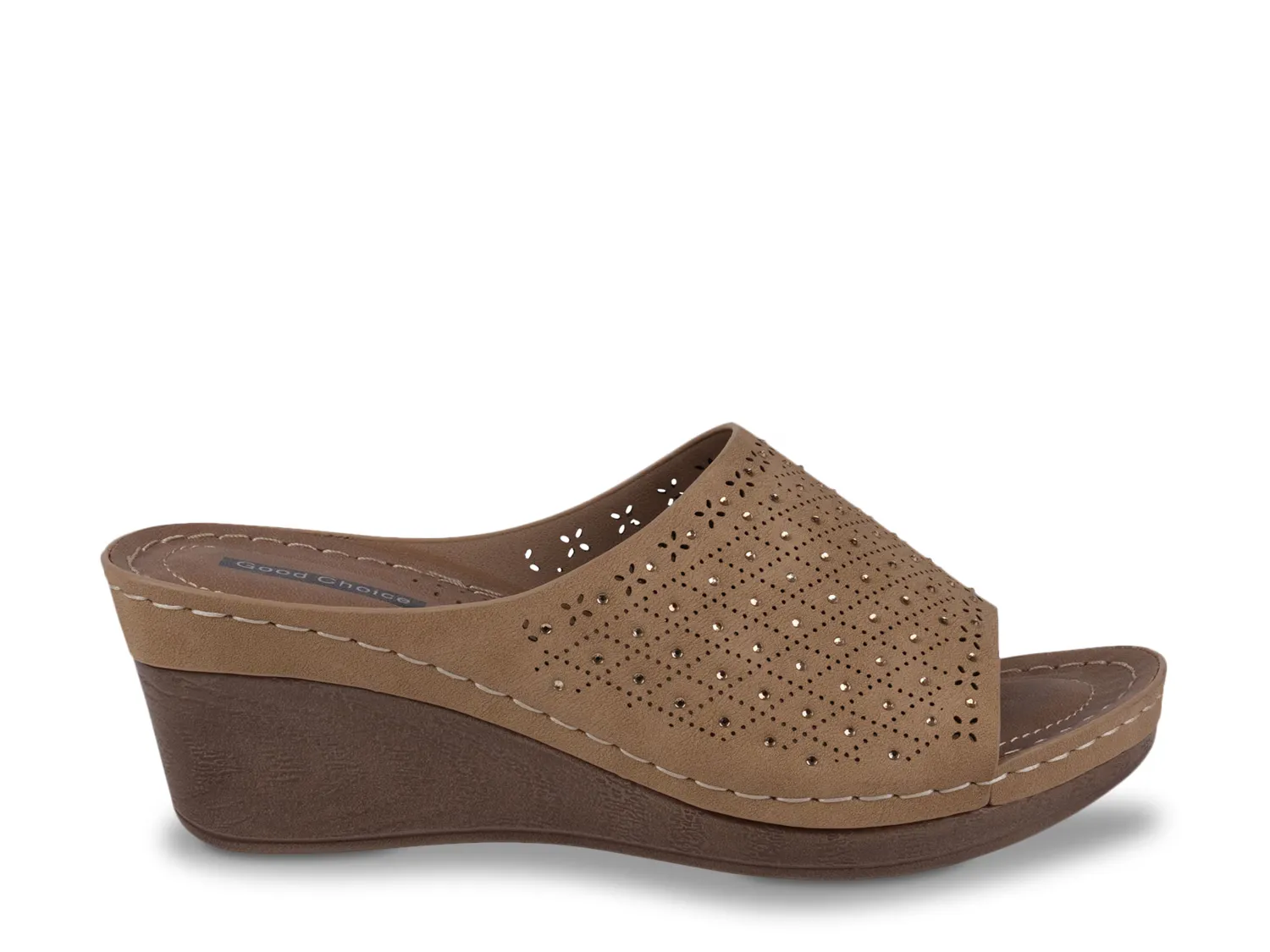 Наденьте босоножки на танкетке Atlanta от Good Choice, чтобы добавить немного гламура своему гардеробу в теплую погоду. Верх, вырезанный лазером, украшен стразами, придающими идеальное сияние.