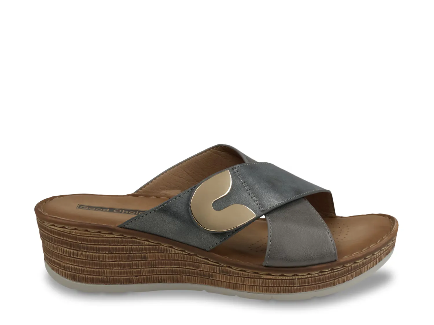 Наденьте босоножки на танкетке Demi от Good Choice и создайте свою новую любимую пару. Перекрещивающиеся ремешки с металлической отделкой и текстурированный каблук придают новизну.