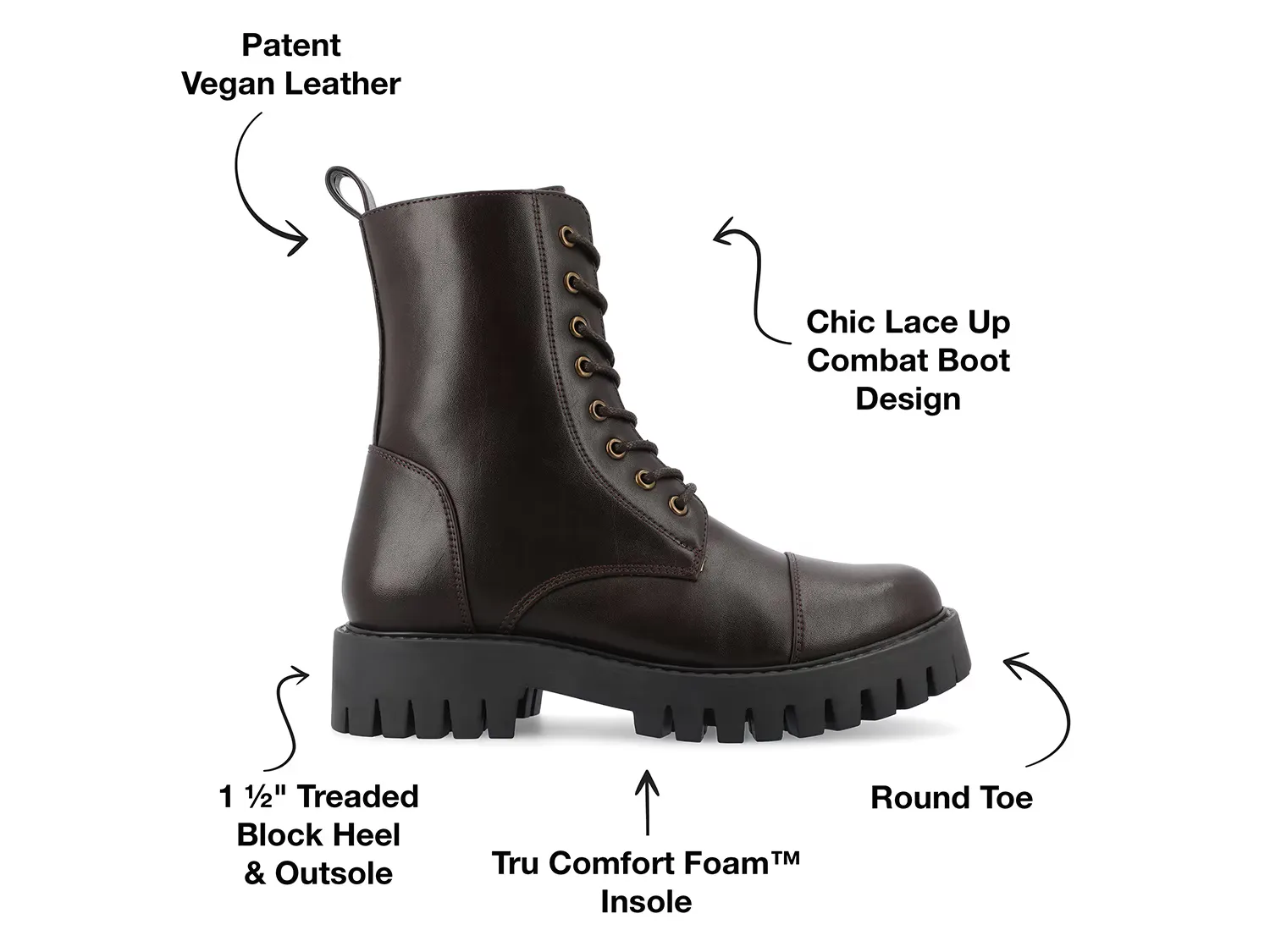 Подчеркните свой модный взгляд с ботильонами Aaley из коллекции Journee. Ботинки в боевой тематике с шикарным верхом из веганской синтетической ткани оснащены шнуровкой и молнией для идеальной посадки. Подошва с выступами обеспечивает надежное сцепление.